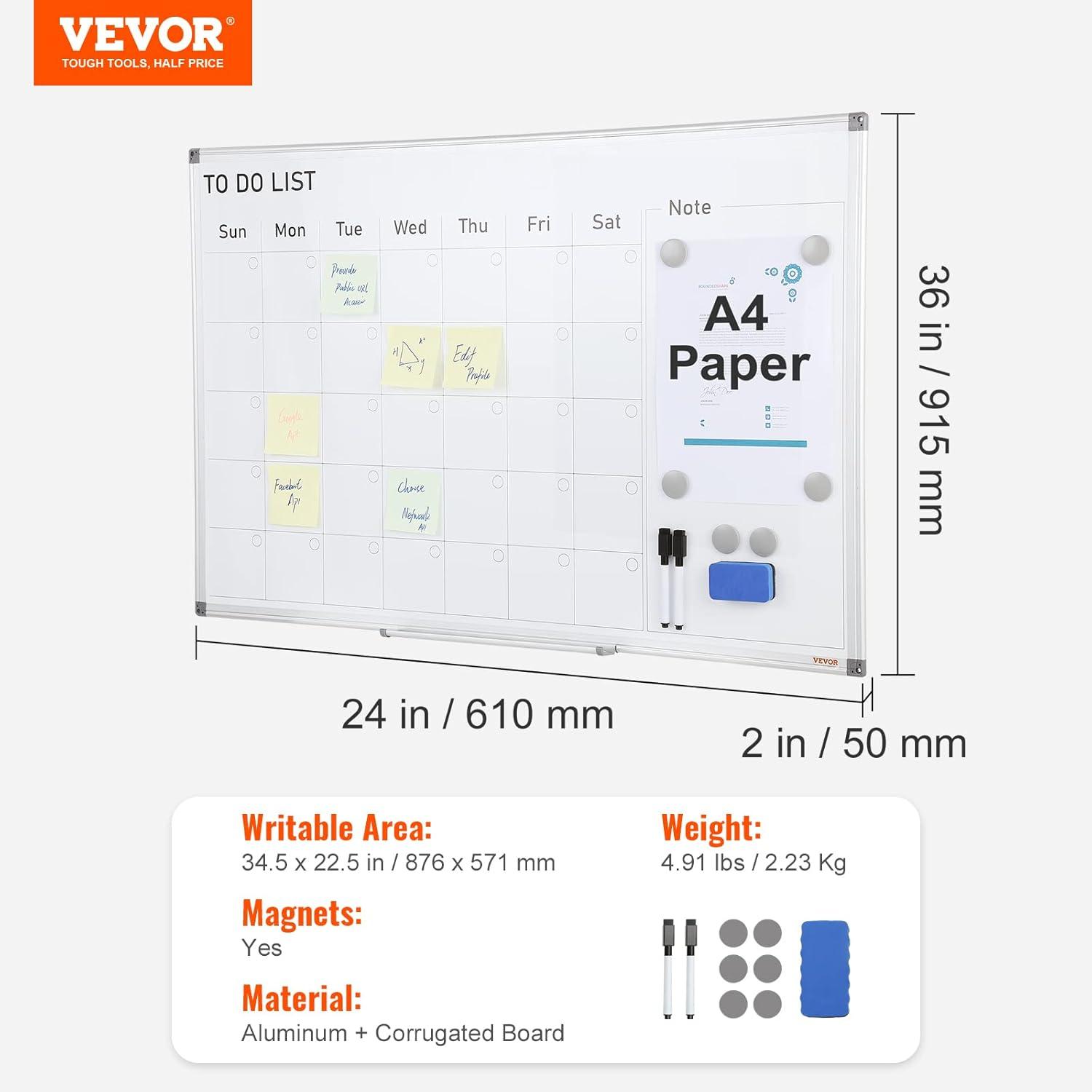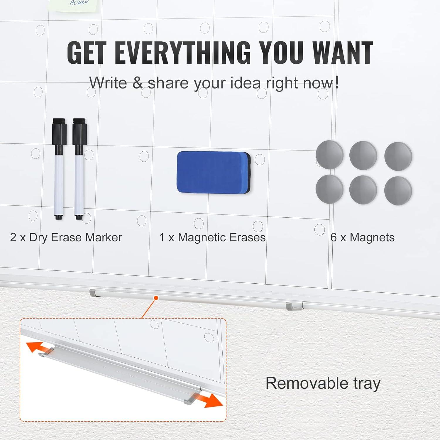imageVEVOR Dry Erase Calendar for Wall 36 x 24 Inches Whiteboard Calendar Monthly Planner Magnetic Dry Erase Board 1 Magnetic Erase ampamp 2 Dry Erase Marker ampamp Movable Tray for Restaurant Office Home Schoolhanging whiteboard