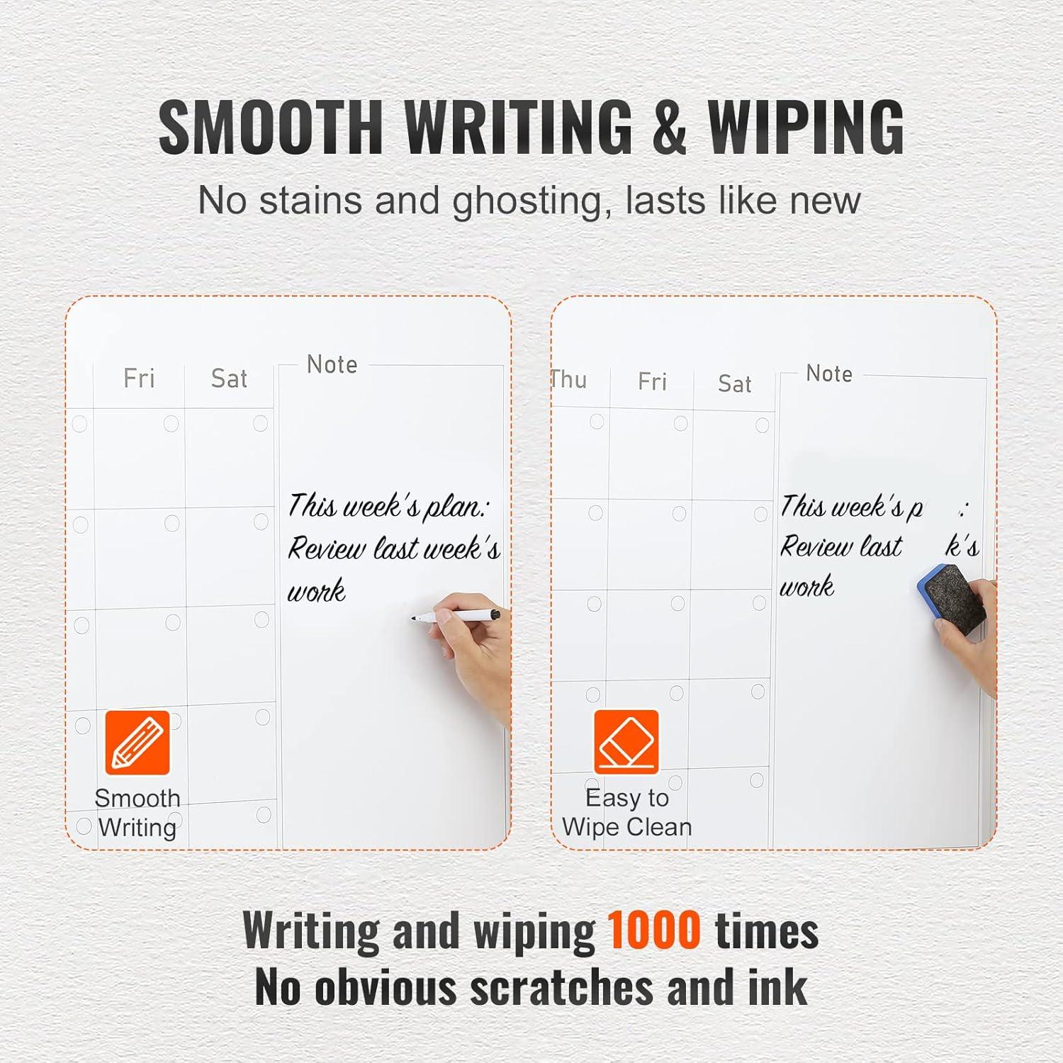 Silky Writing & Wiping: Our baking paint surface offers an ultra-smooth writing experience that is effortless to wipe clean, leaving no visible scratches or ink marks even after 1000 uses. In addition, our calendar white board features strong magnetic properties, allowing you to easily attach your documents, photos, and other materials using magnets.