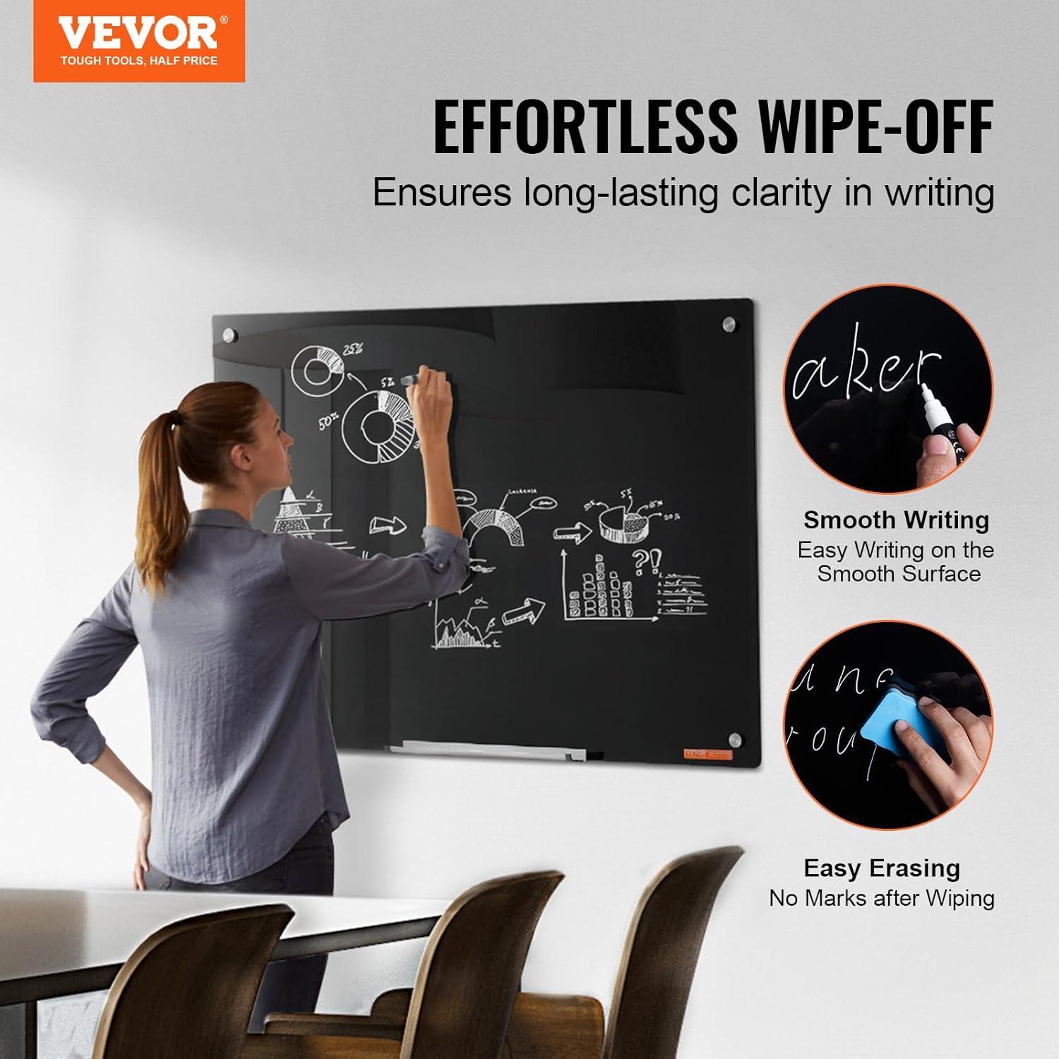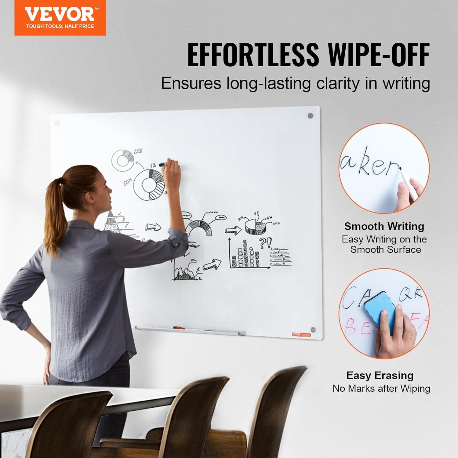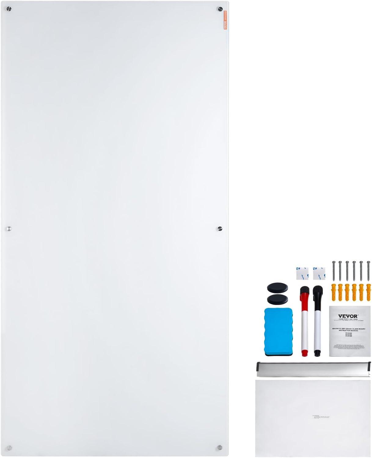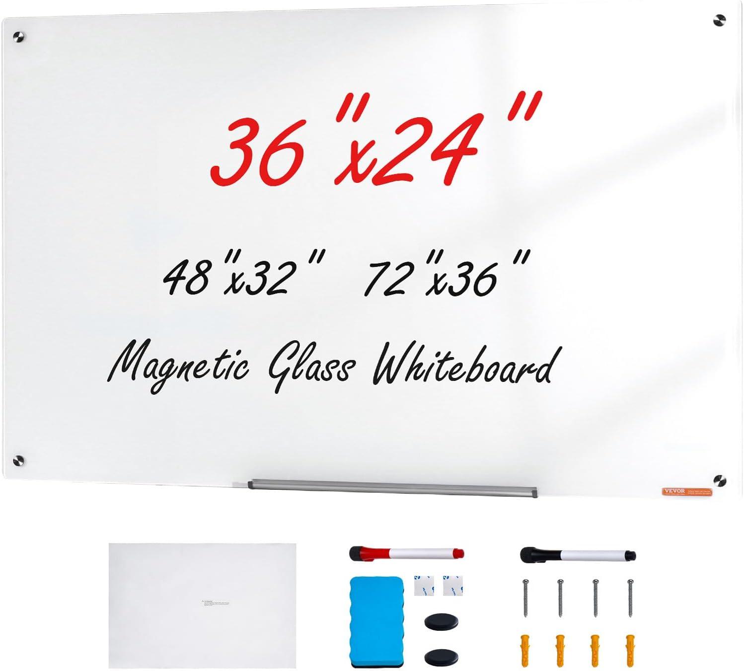 VEVOR Dry Erase Calendar for Wall, 36 x 24 Inches Whiteboard Calendar, Monthly Planner Magnetic Dry Erase Board, 1 Magnetic Erase & 2 Dry Erase Marker & Movable Tray for Restaurant Office Home School(glass whiteboard)