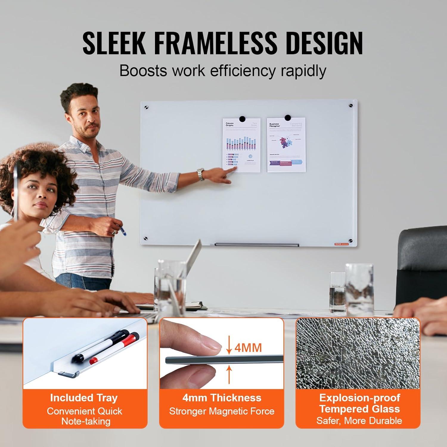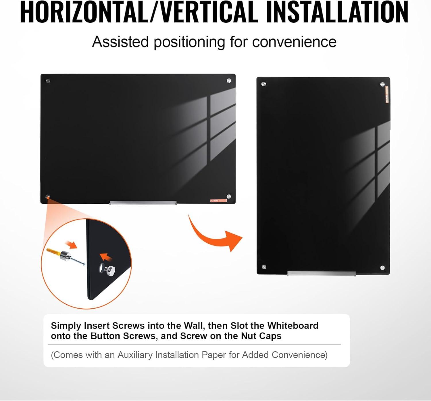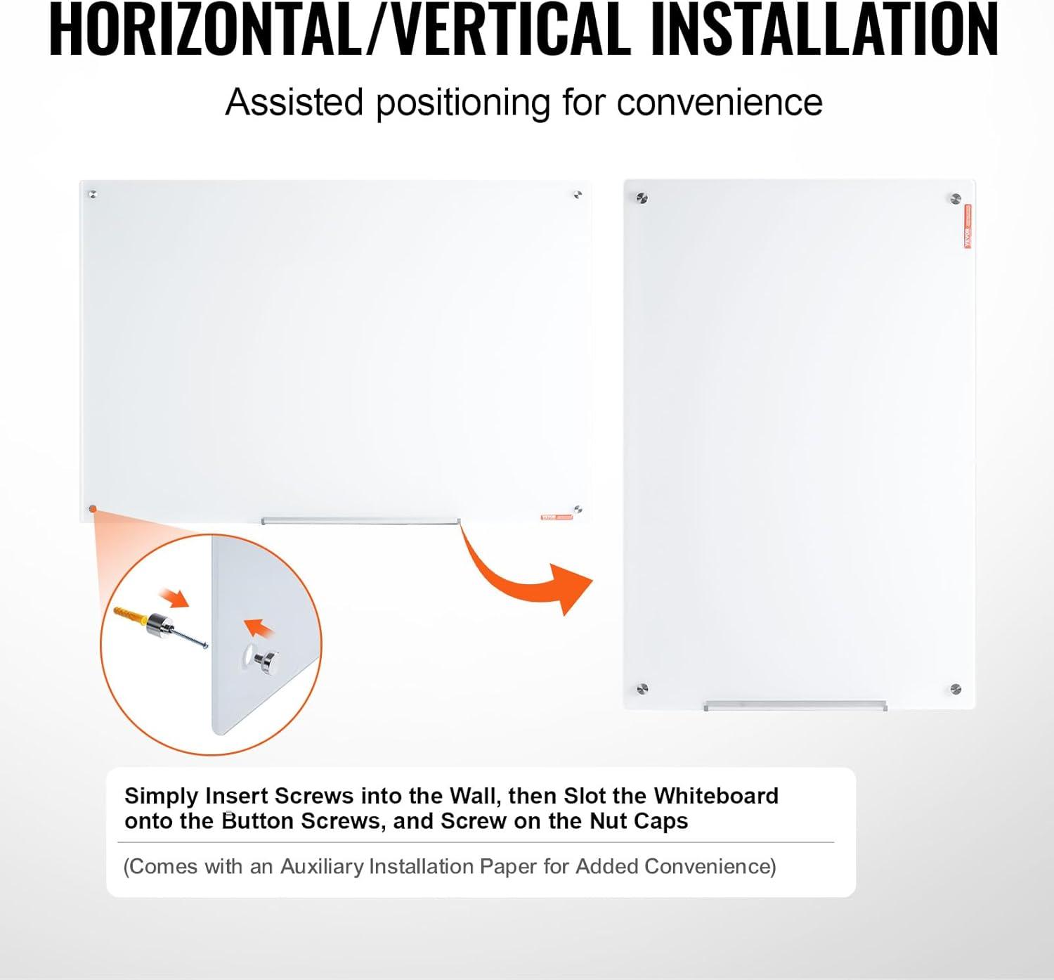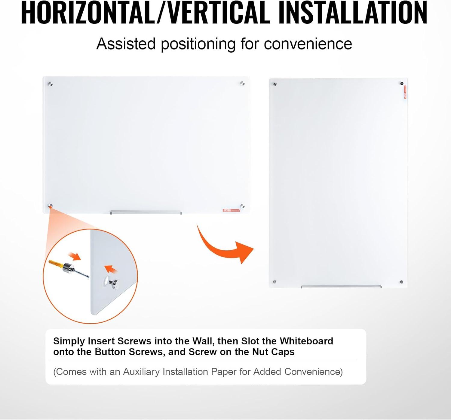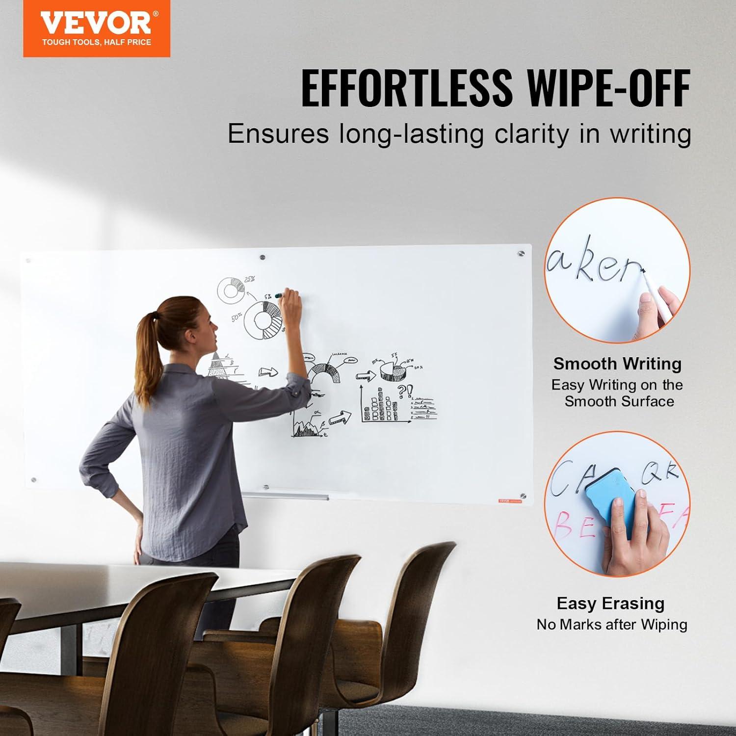VEVOR Dry Erase Calendar for Wall, 36 x 24 Inches Whiteboard Calendar, Monthly Planner Magnetic Dry Erase Board, 1 Magnetic Erase & 2 Dry Erase Marker & Movable Tray for Restaurant Office Home School(glass whiteboard)