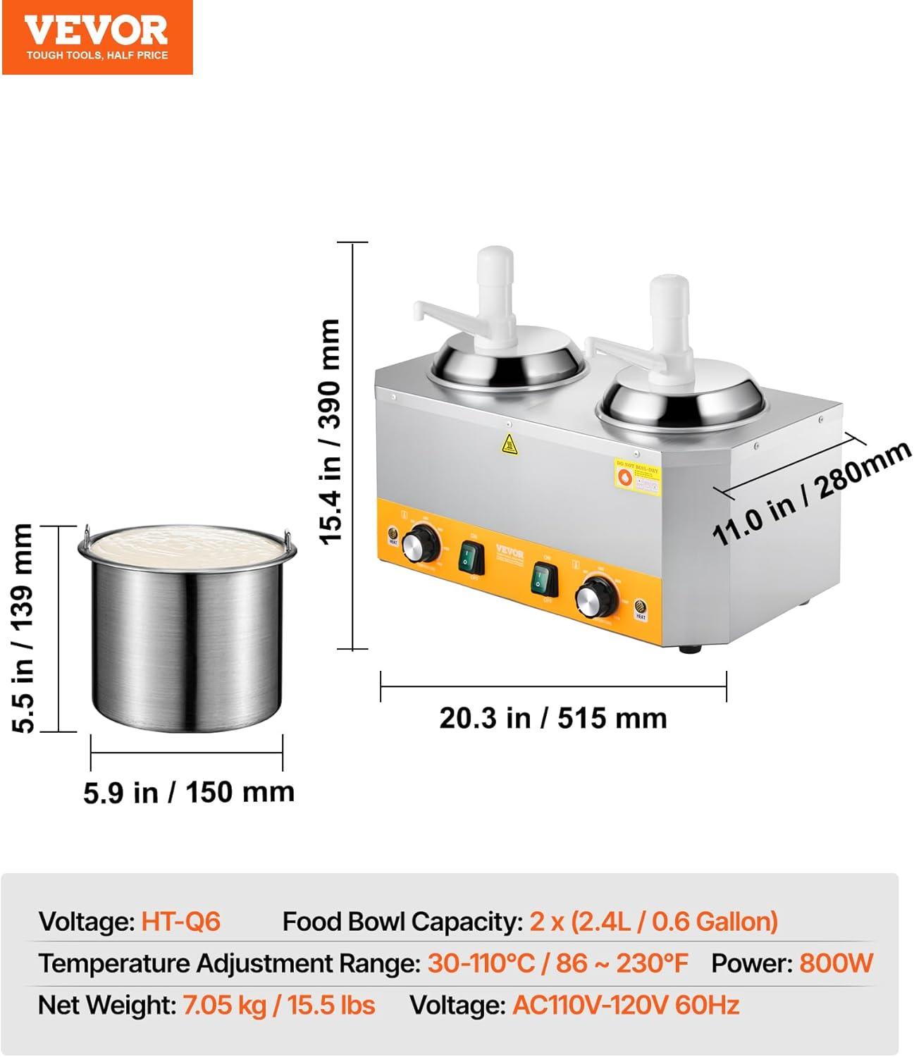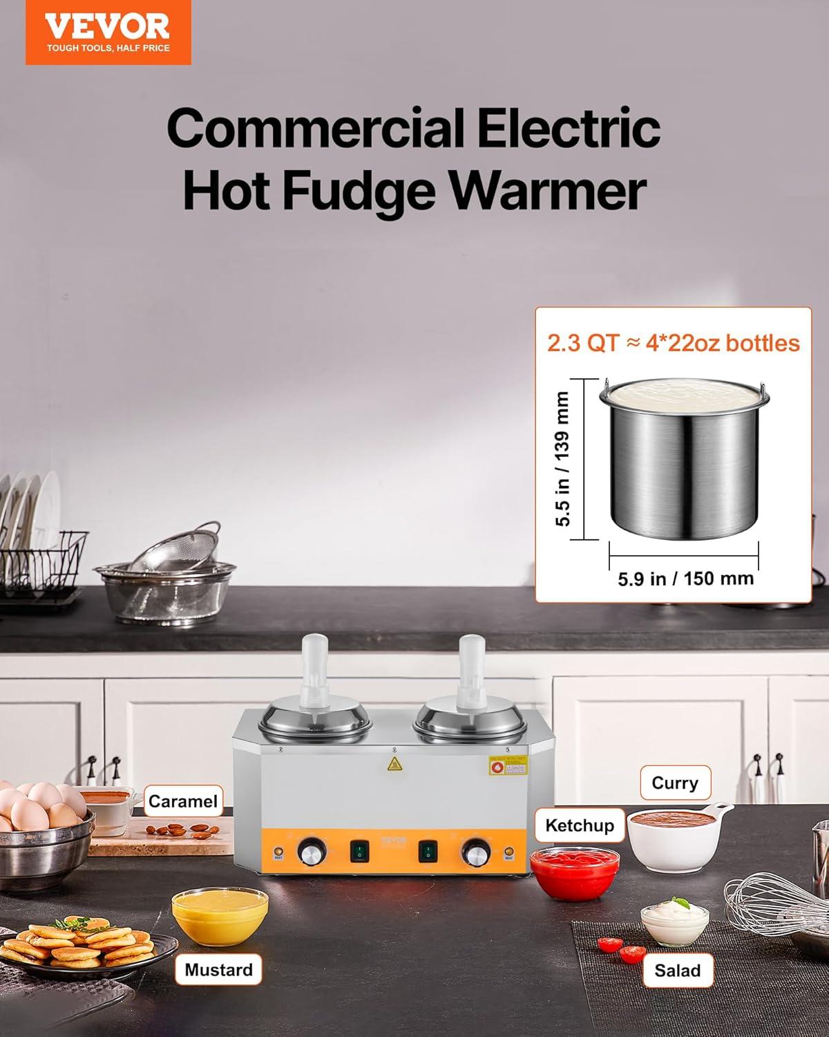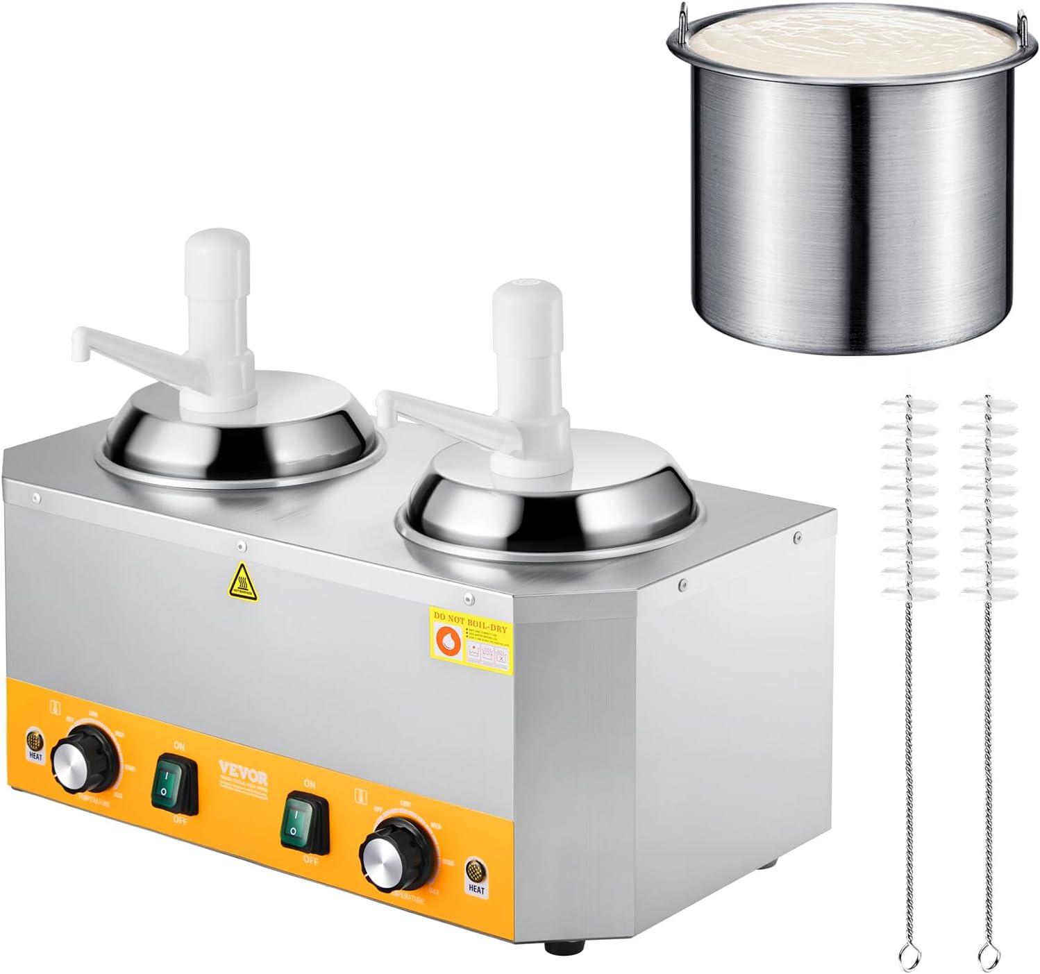Precision Temperature Control: The hot fudge warmer offers a wide range of temperature settings from 86 ~ 230℉ (30-110℃). Its powerful 600W ensures the water in the tank heats up swiftly to your chosen temperature. Should the water temperature dip, it will automatically reheat to maintain the set temperature, ensuring your sauce remains warm and ready to serve.