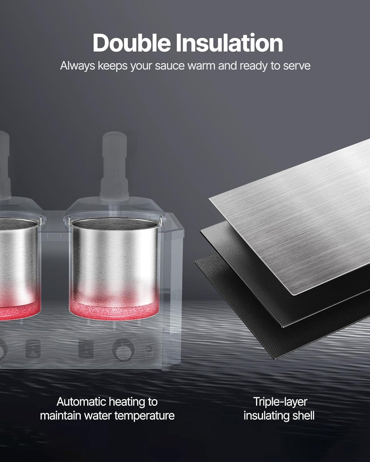 Wide Applicability: The sauce warmer comes with dry burn protection, automatically shutting off when the water runs out. Its versatile design makes it suitable for various settings, such as fast food joints, canteens, snack bars, and pubs.