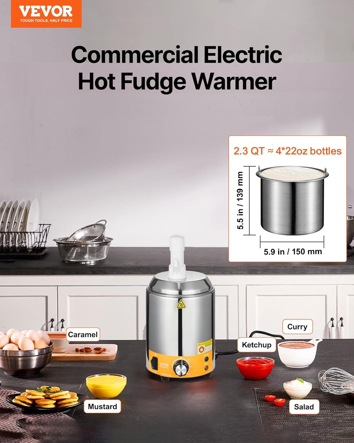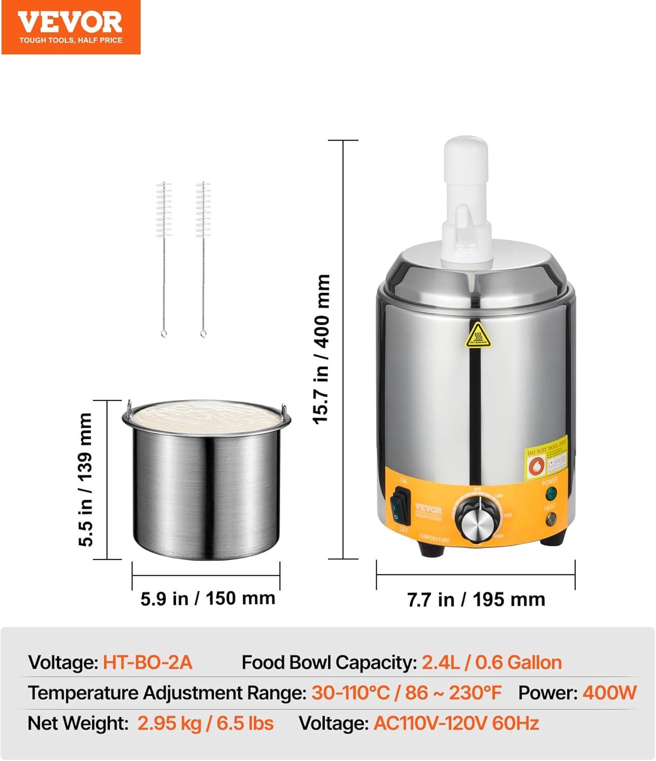 VEVOR Electric Cheese Dispenser with Pump, 2.3 Qt Commercial Hot Fudge Warmer, Plastic Pump Dispenser, 86-230℉ Temp Adjustable Nacho Cheese Sauce Warmer, for Hot Fudge Cheese Caramel(2.4L)