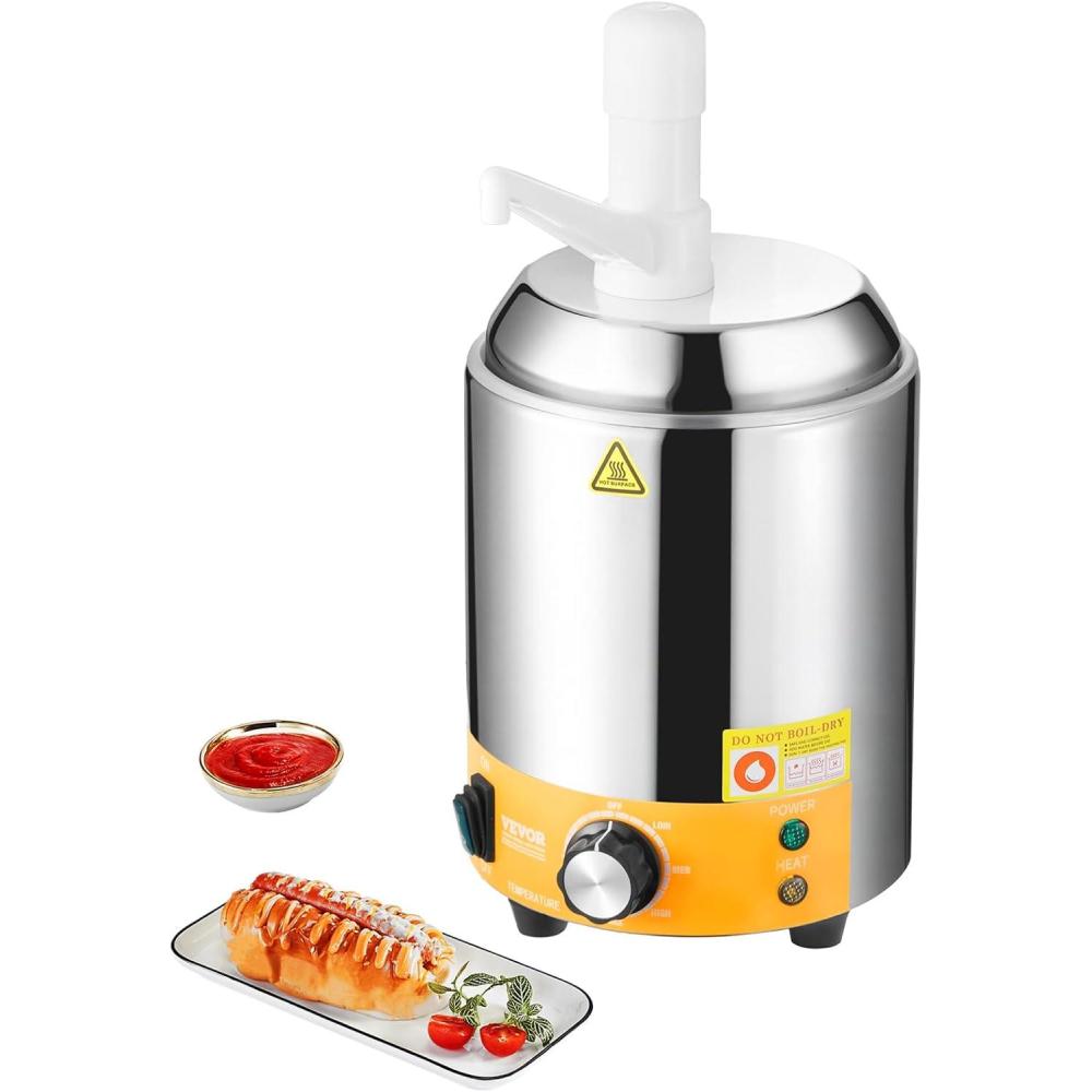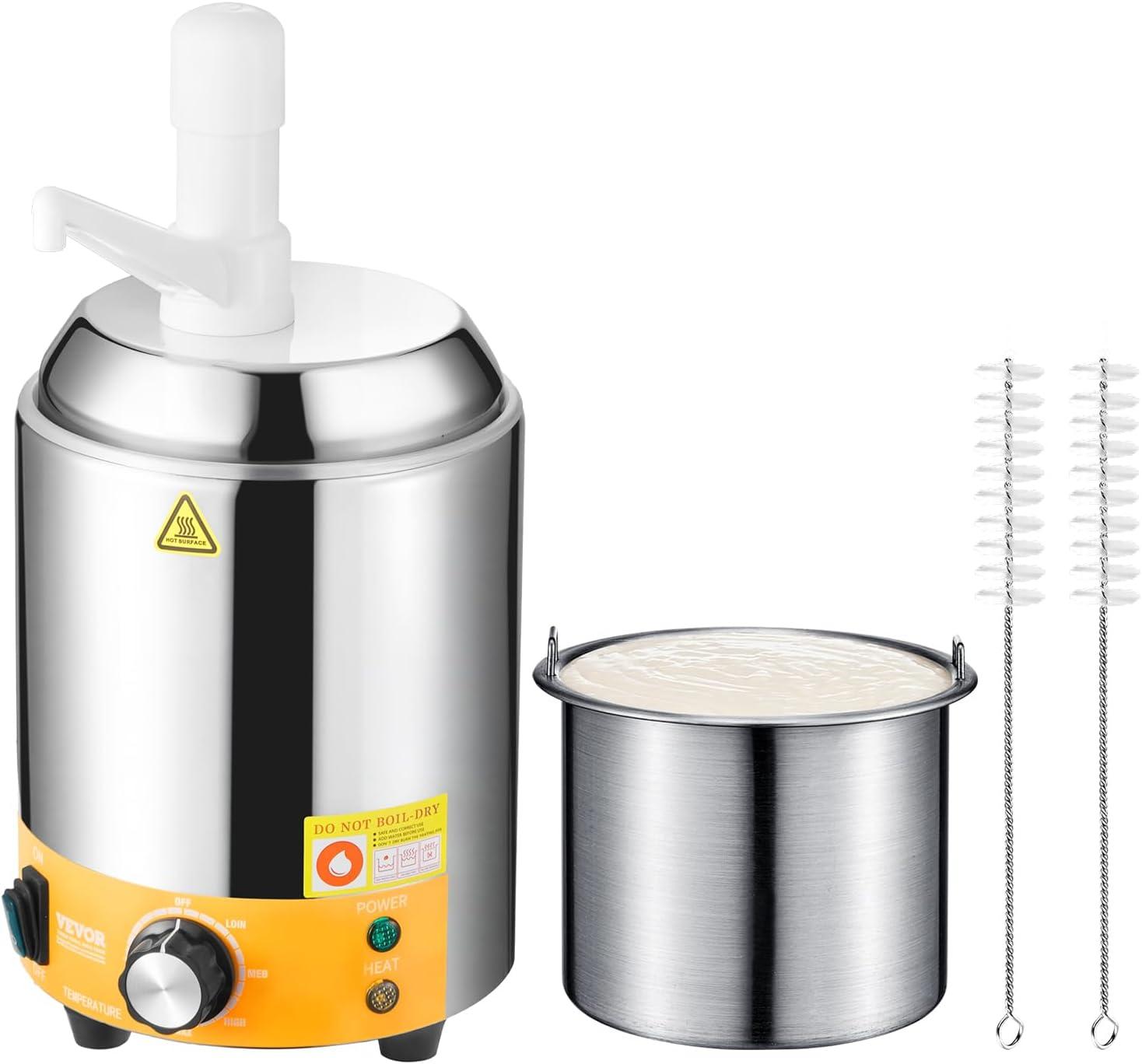 VEVOR Electric Cheese Dispenser with Pump, 2.3 Qt Commercial Hot Fudge Warmer, Plastic Pump Dispenser, 86-230℉ Temp Adjustable Nacho Cheese Sauce Warmer, for Hot Fudge Cheese Caramel(2.4L(Plastic Pump))