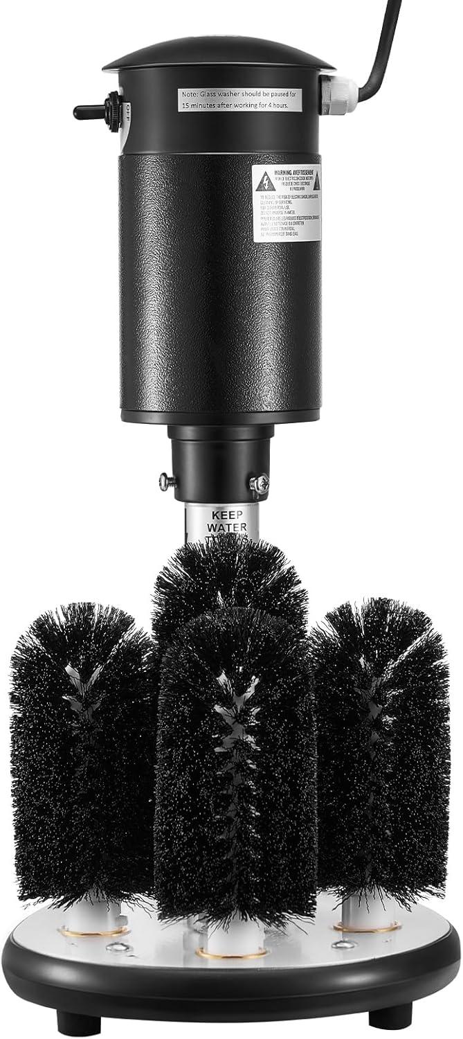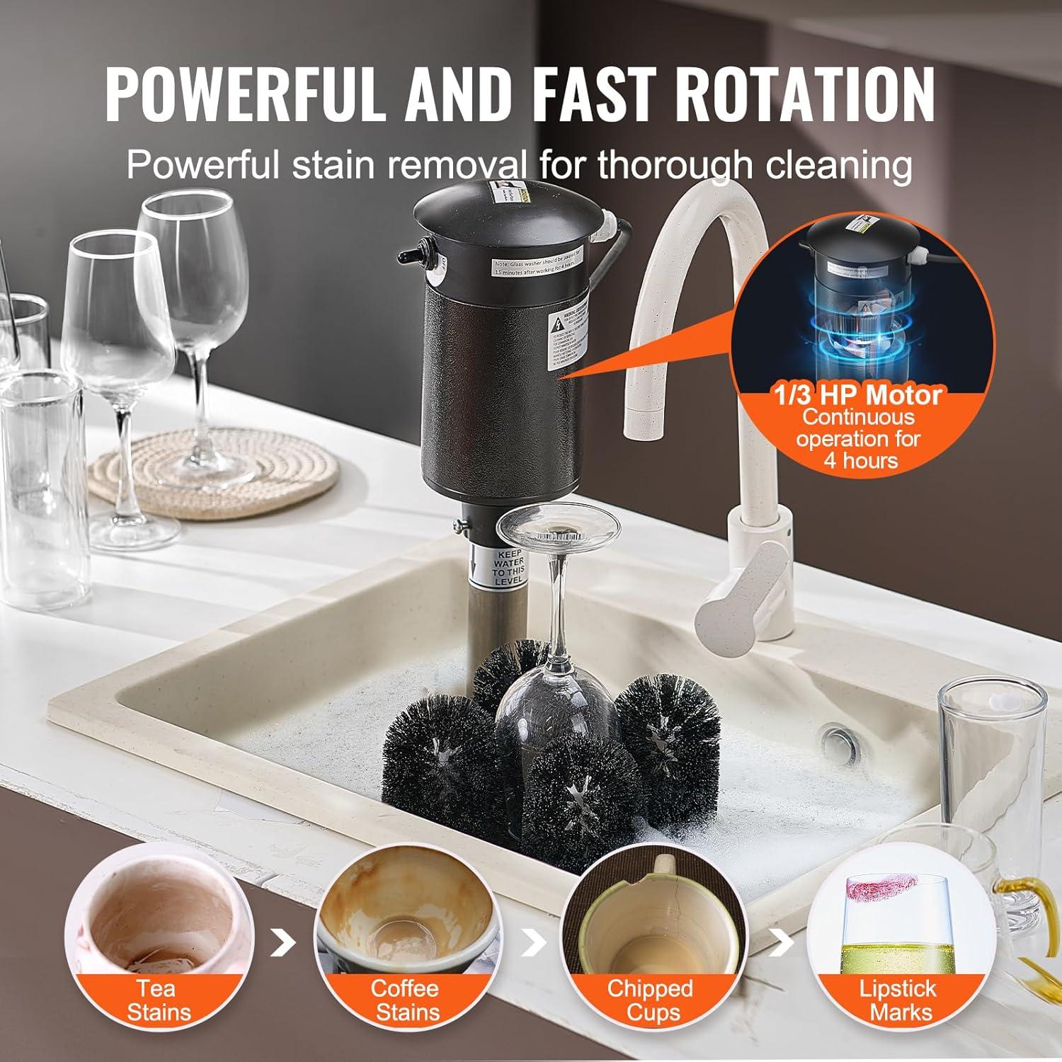 Powerful Stain Removal: Equipped with a high-performance 1/3 hp motor, this electric glass washer supports up to 8 hours of continuous efficient operation. It tackles stubborn stains such as old tea residue, coffee marks, fine cracks, and lipstick smudges with its high-speed rotating brush head, achieving thorough and deep cleaning results.