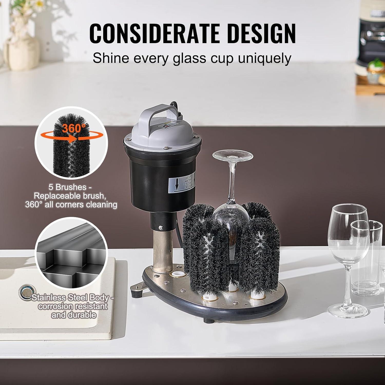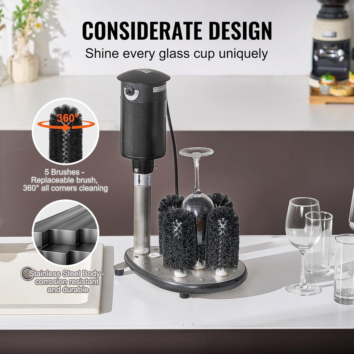 VEVOR Electric Commercial Glass Washer, 5-Brush Bar Glass Cleaner, 1200 Cups/Hour Wine Glass Cleaning Machine, Bar Glass Washer for Champagne Glasses, Beer Cups, Mugs, Perfect for Bars and Cafes(Glass Washer)