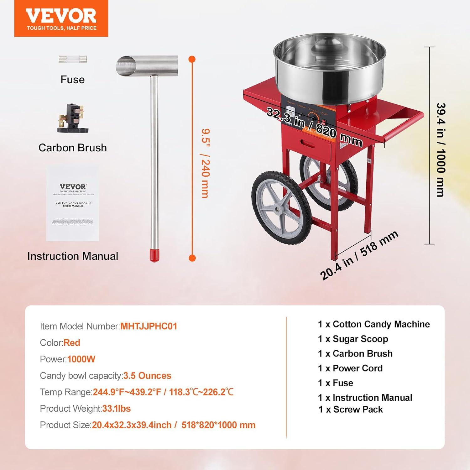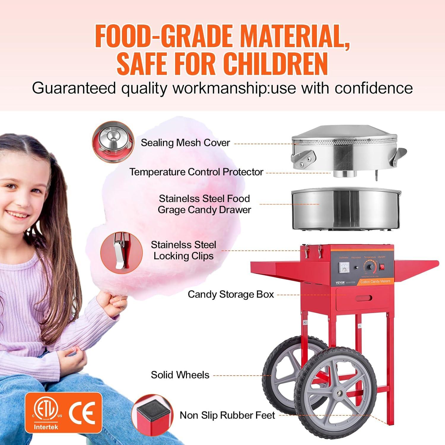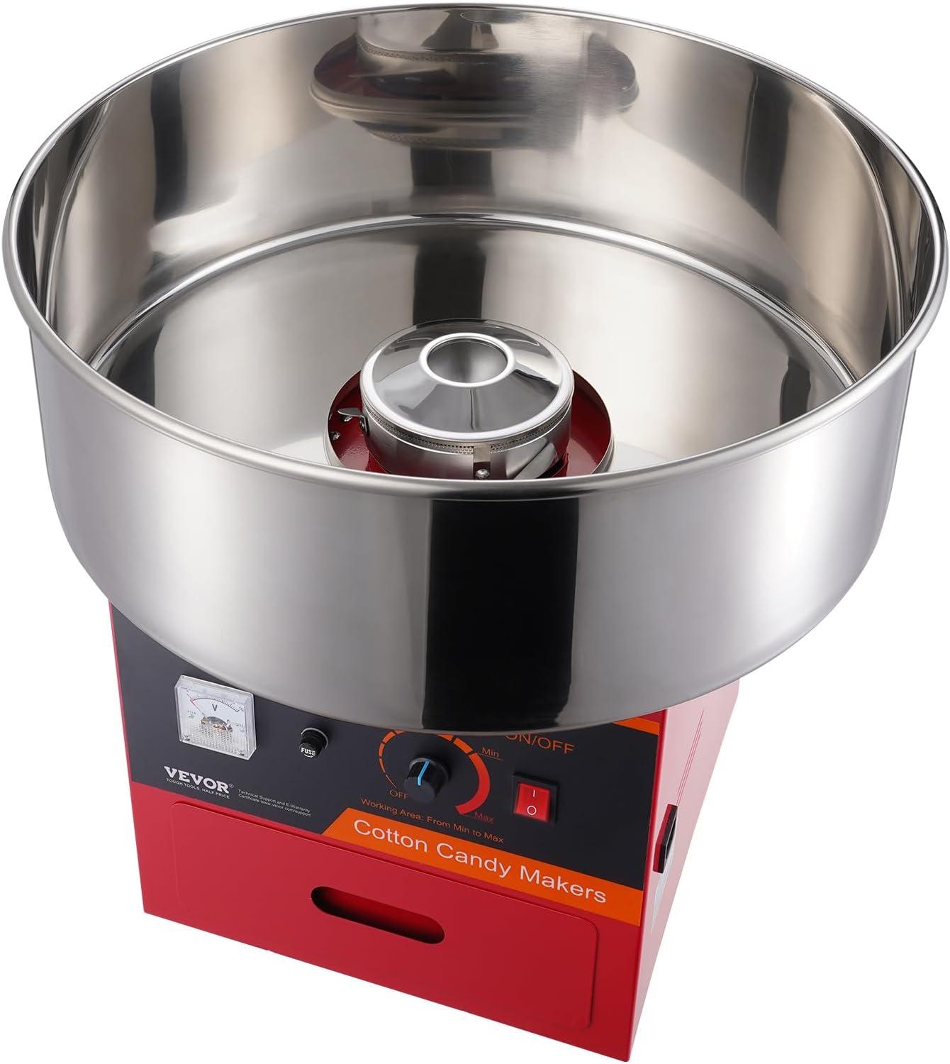 VEVOR Electric Cotton Candy Machine, 1000W Commercial Floss Maker w/Stainless Steel Bowl, Sugar Scoop and Drawer, Perfect for Home, Carnival, Kids Birthday, Family Party, Pink(Red)