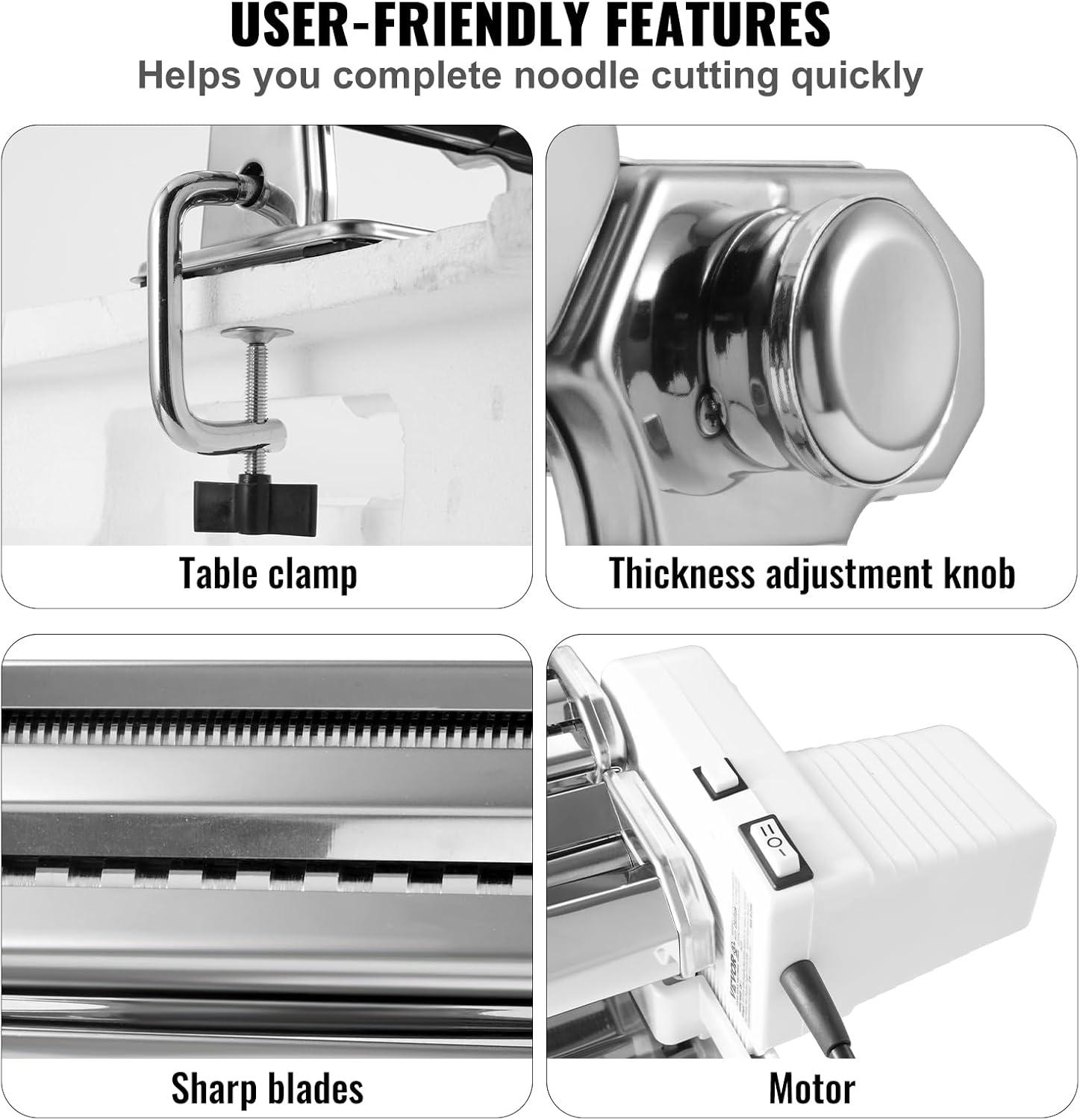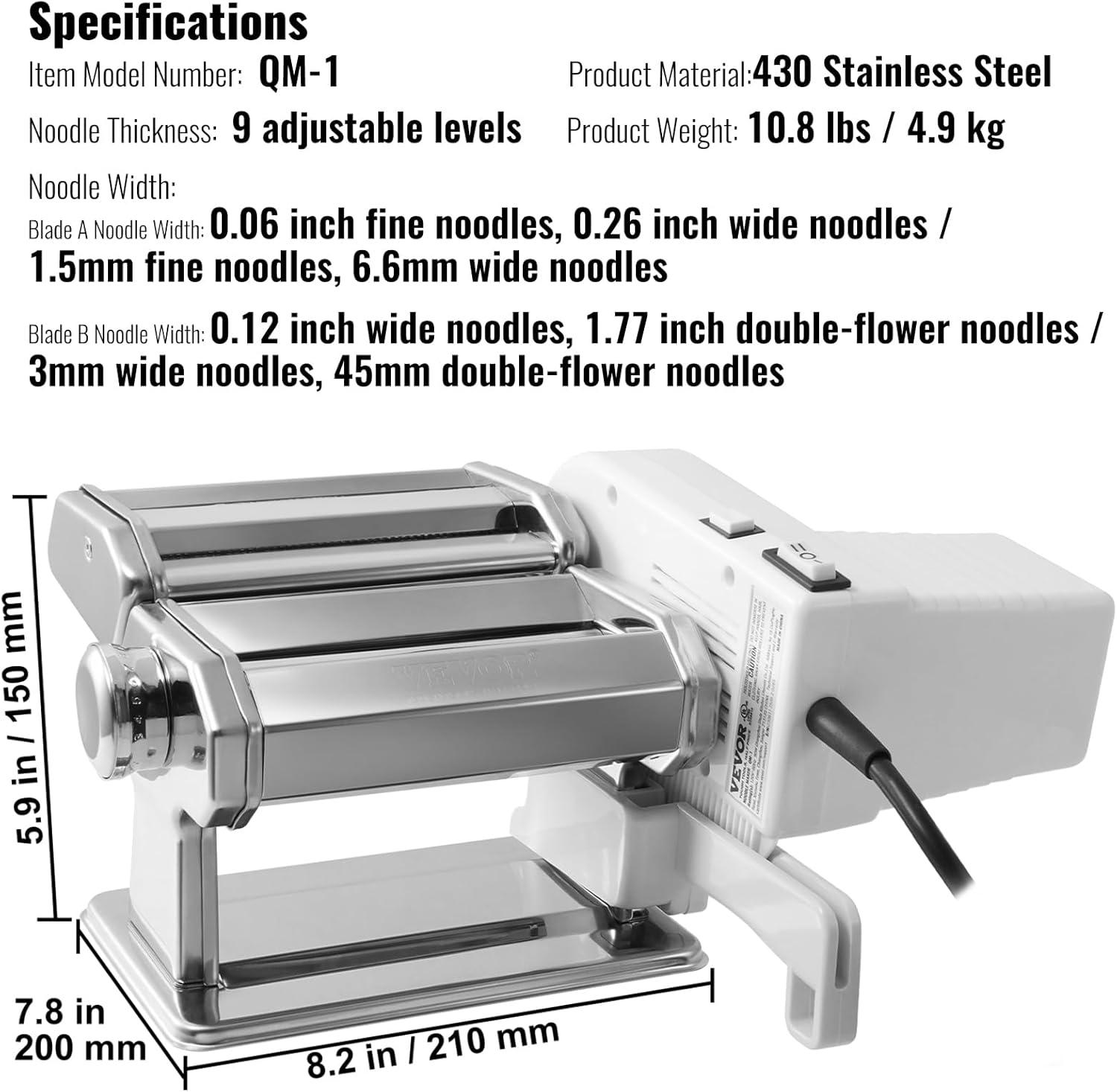 VEVOR Electric Pasta Maker Machine, 9 Adjustable Thickness Settings Noodles Maker, Stainless Steel Noodle Rollers and Cutter, Pasta Making Kitchen Tool Kit, Perfect for Spaghetti, Fettuccini, Lasagna(Electric Pasta Maker)