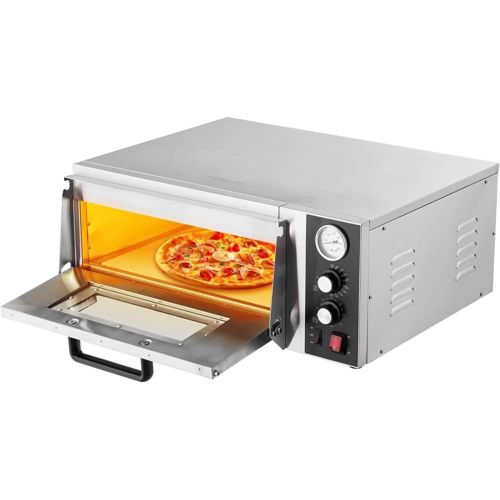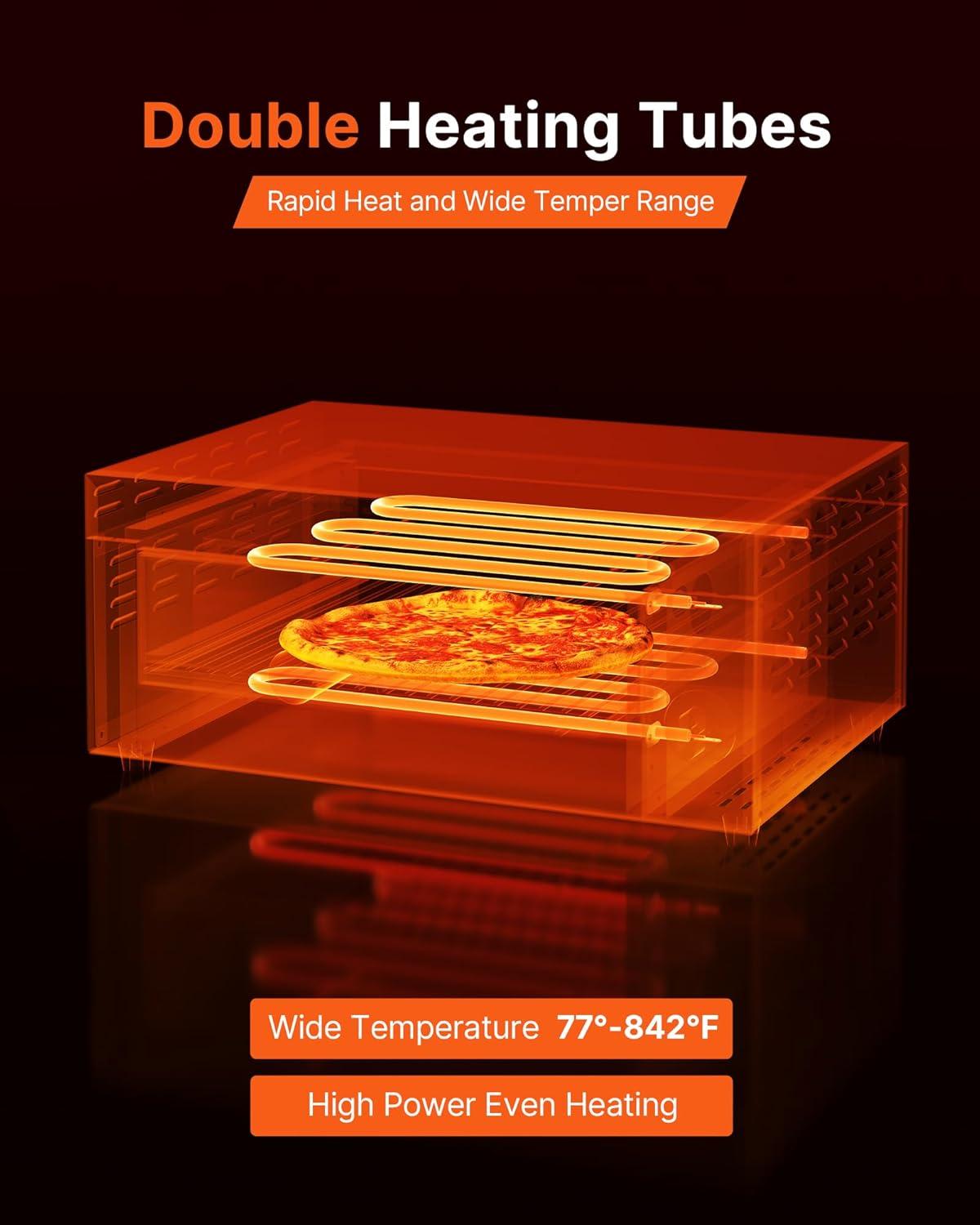 Enjoy Crispy Pizzas Every Time: The 1740W powerful commercial pizza oven empowers you to bake crispy and yummy pizza just in a few minutes. Coupled with top and bottom dual heating tubes, it unleashes 360° uniform baking and sufficient heat to swiftly cook your food to perfection every time
