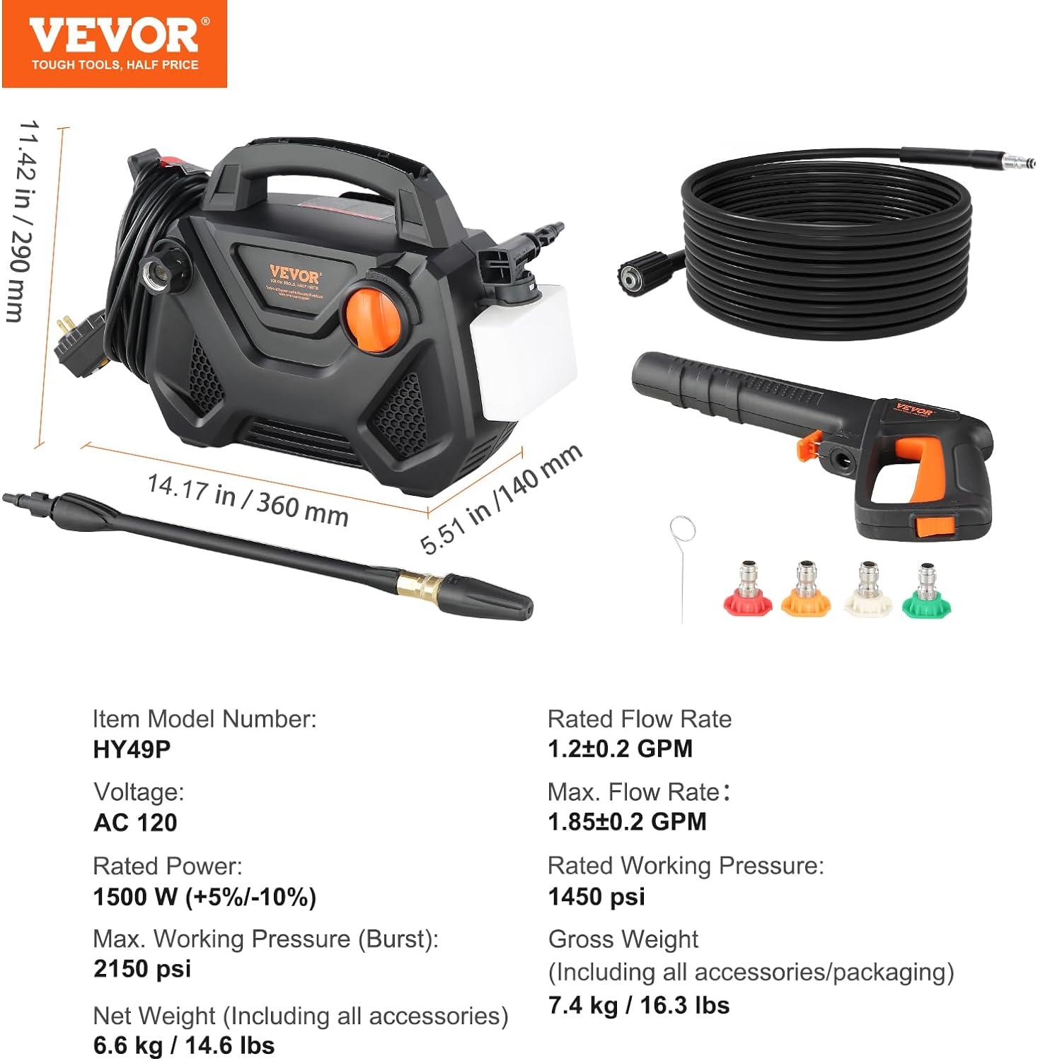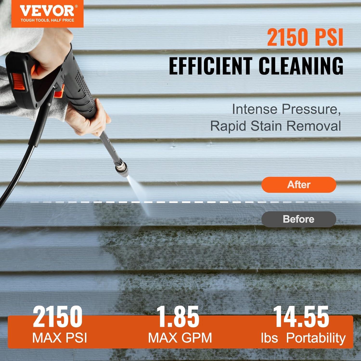 2150 PSI High Pressure: 2150 PSI high water pressure, paired with 1.85 GPM, is designed for tackling stubborn stains and dirt on cars, driveways, and more. The super-strong water pressure makes it easy to remove tough stains.