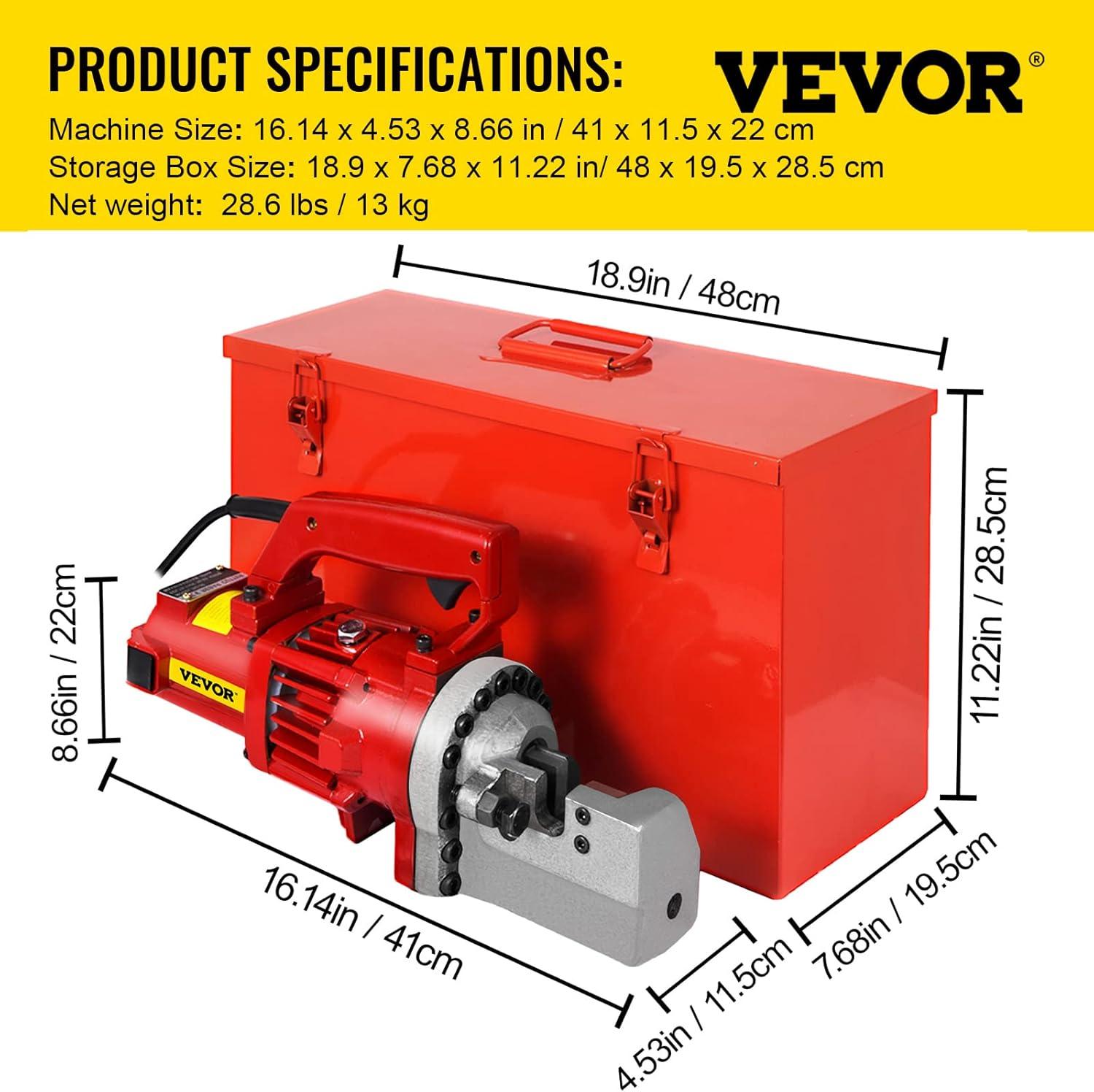 VEVOR Electric Rebar Cutter, 900W Portable Electric Hydraulic Rebar Cutter, Cutting up to 5/8 Inch #5 4-16mm Rebar within 3 Seconds,110V,with Easy to Carry Stainless Box(1350W RC-22)