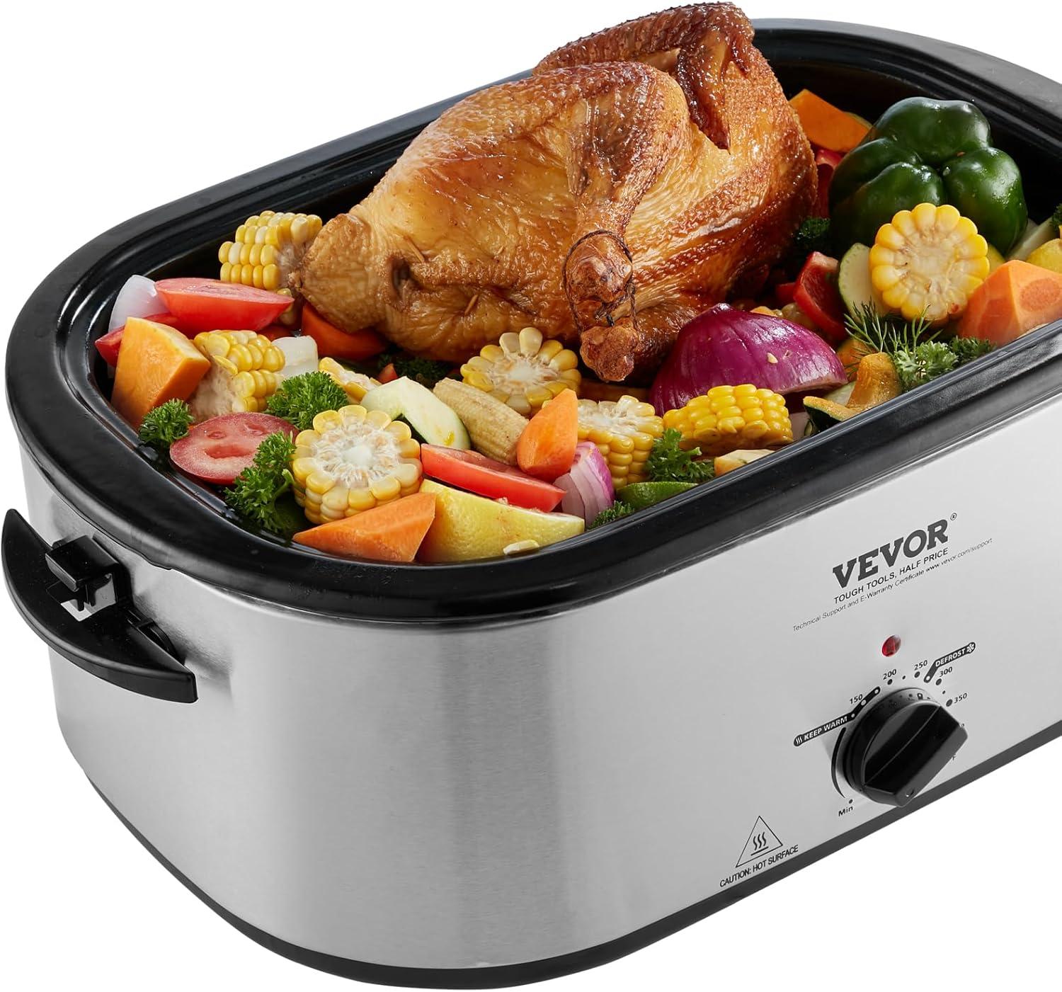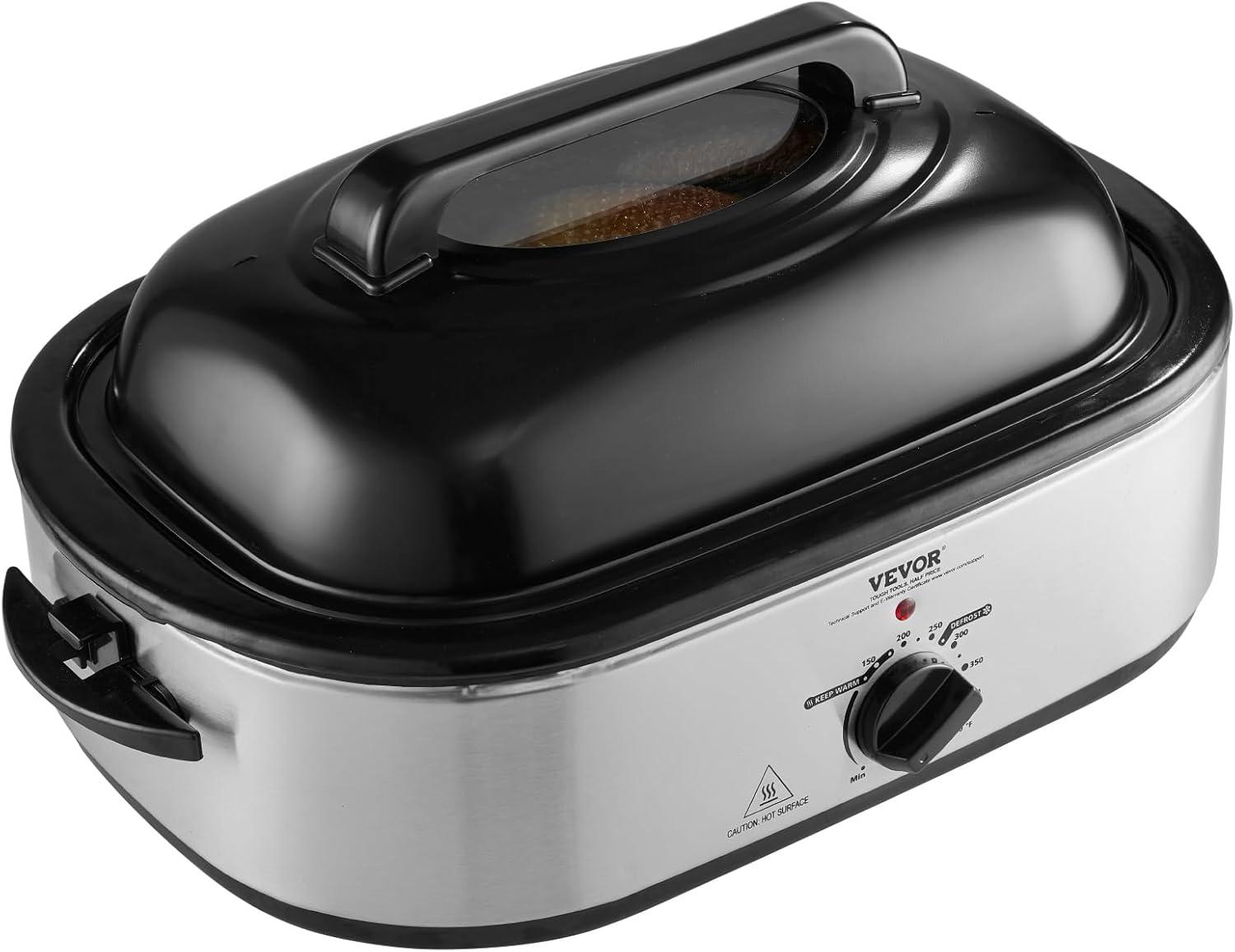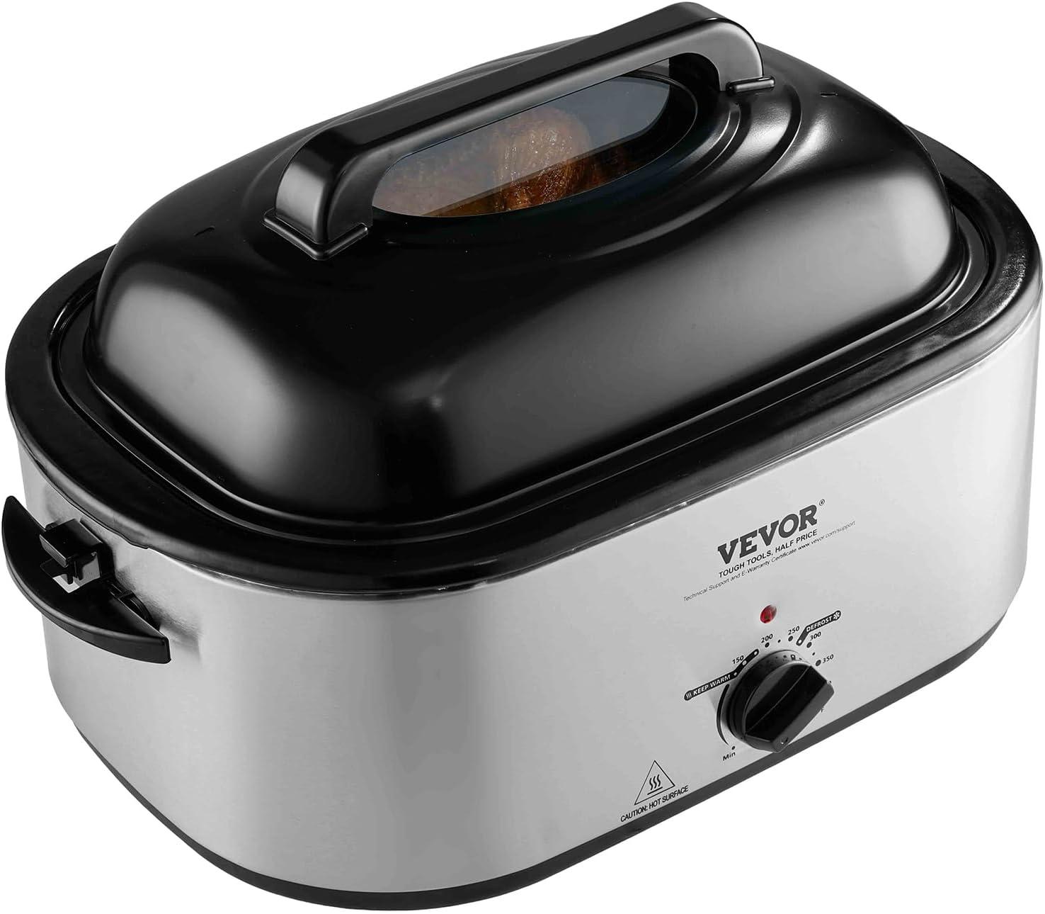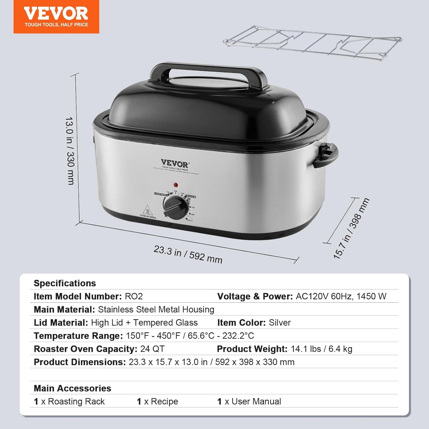 Savor Up To 26 lbs Turkey: Looking to roast a brown, juicy, and crispy turkey? VEVOR 22 QT electric roaster oven is your ideal cooking companion! With its powerful 1450W motor, deep roasting pan and large capacity, it effortlessly accommodates a medium-sized turkey weighing up to 26 lbs, creating delicious feasts for 8-10 people.