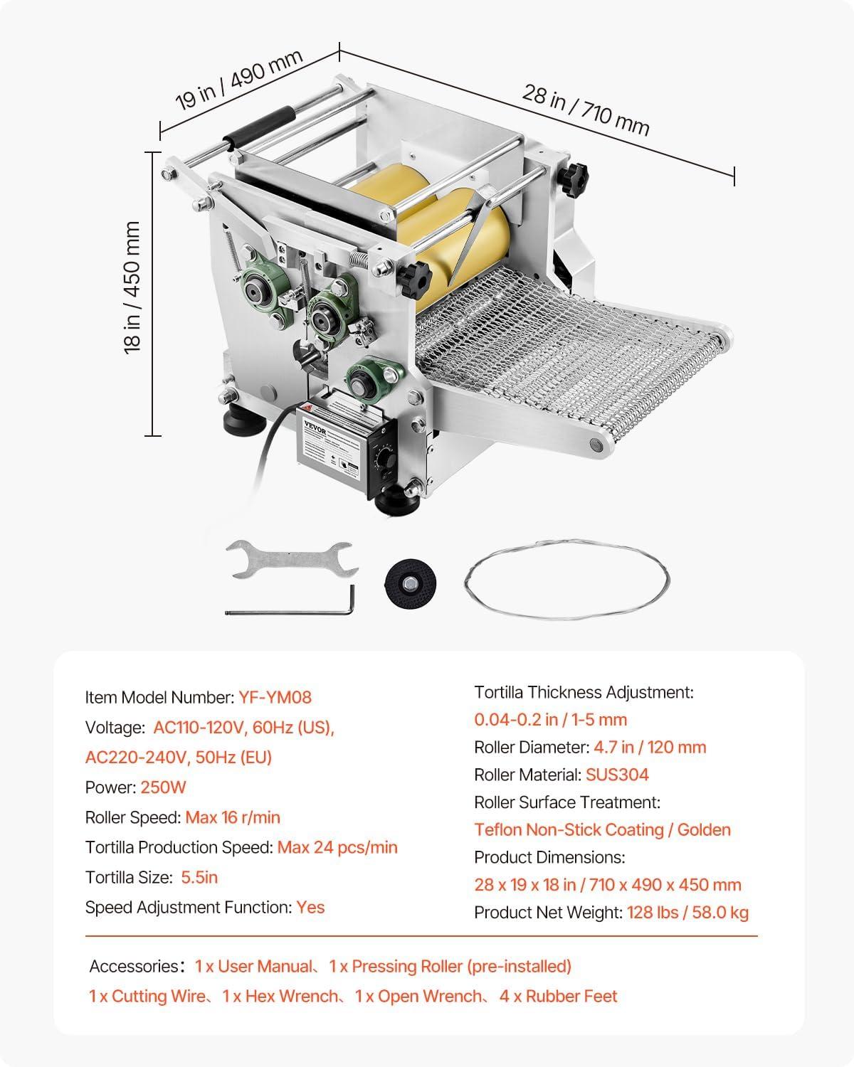 Durable & Long-Lasting: Designed for longevity, this tortilla maker is corrosion-proof and deformation-resistant. Its stainless steel rollers and conveyor system ensure reliable and clean performance.