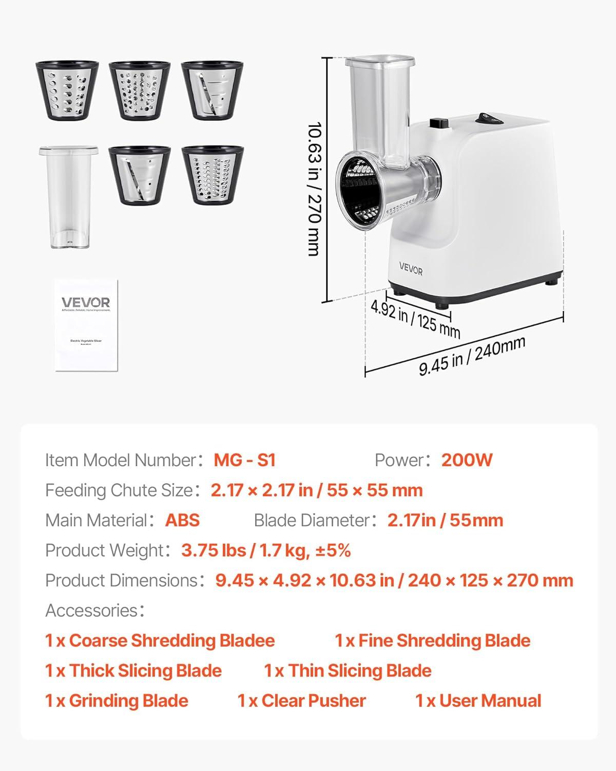 VEVOR Electric Vegetable Slicer, 0-0.5″/0-12mm Thickness Adjustable Commercial Slicer Machine, Convertible to Manual, Stainless Steel Food Cutter Slicing Machine, Large Feed Port for Potato, Tomato(200W)