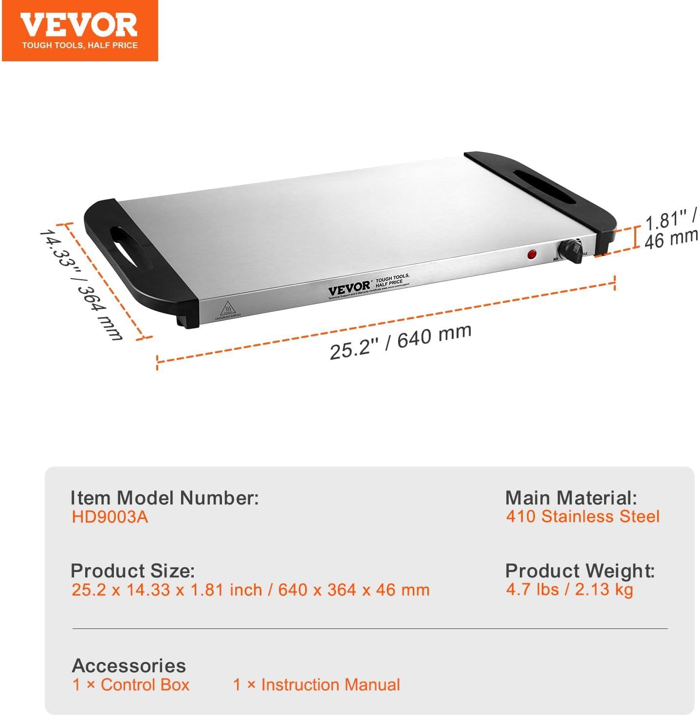 Keep Warm for a Long Time: With a spacious 25.2 x 14.33 inch surface, this electric warming tray uses metal heating wires at the bottom to provide continuous and even heat, keeping your food warm for extended periods so you can enjoy warm meals anytime. The indicator light turns on when powered, and once the desired temperature is reached, the light turns off. Note: The light turning off does not mean the product has stopped working.