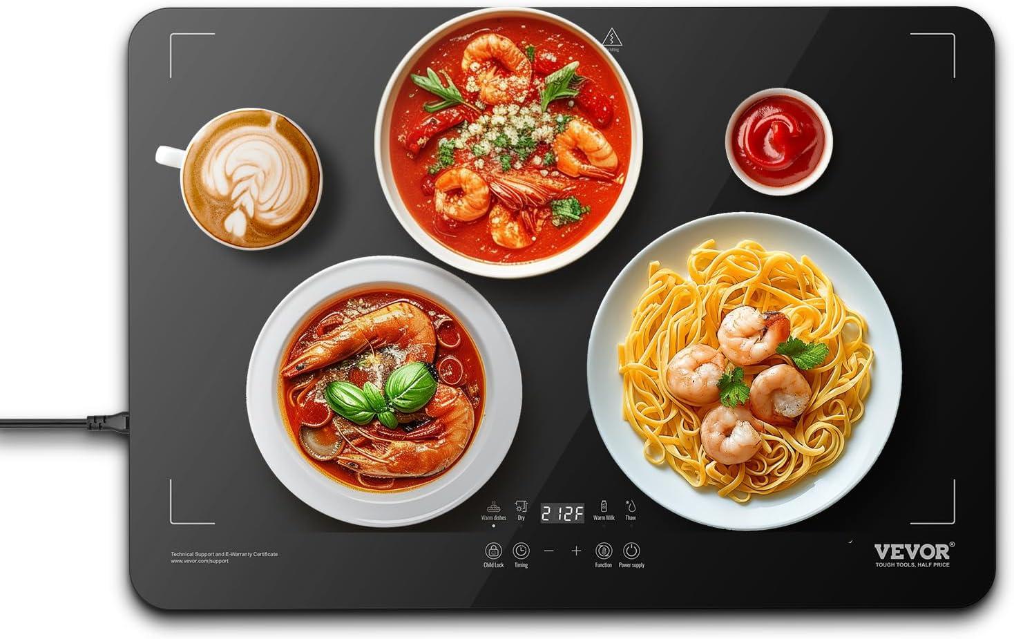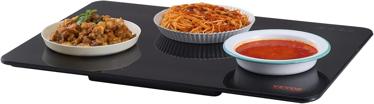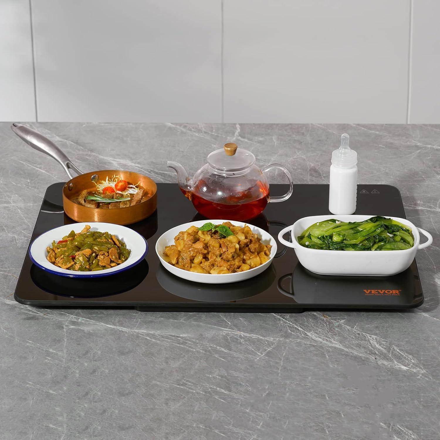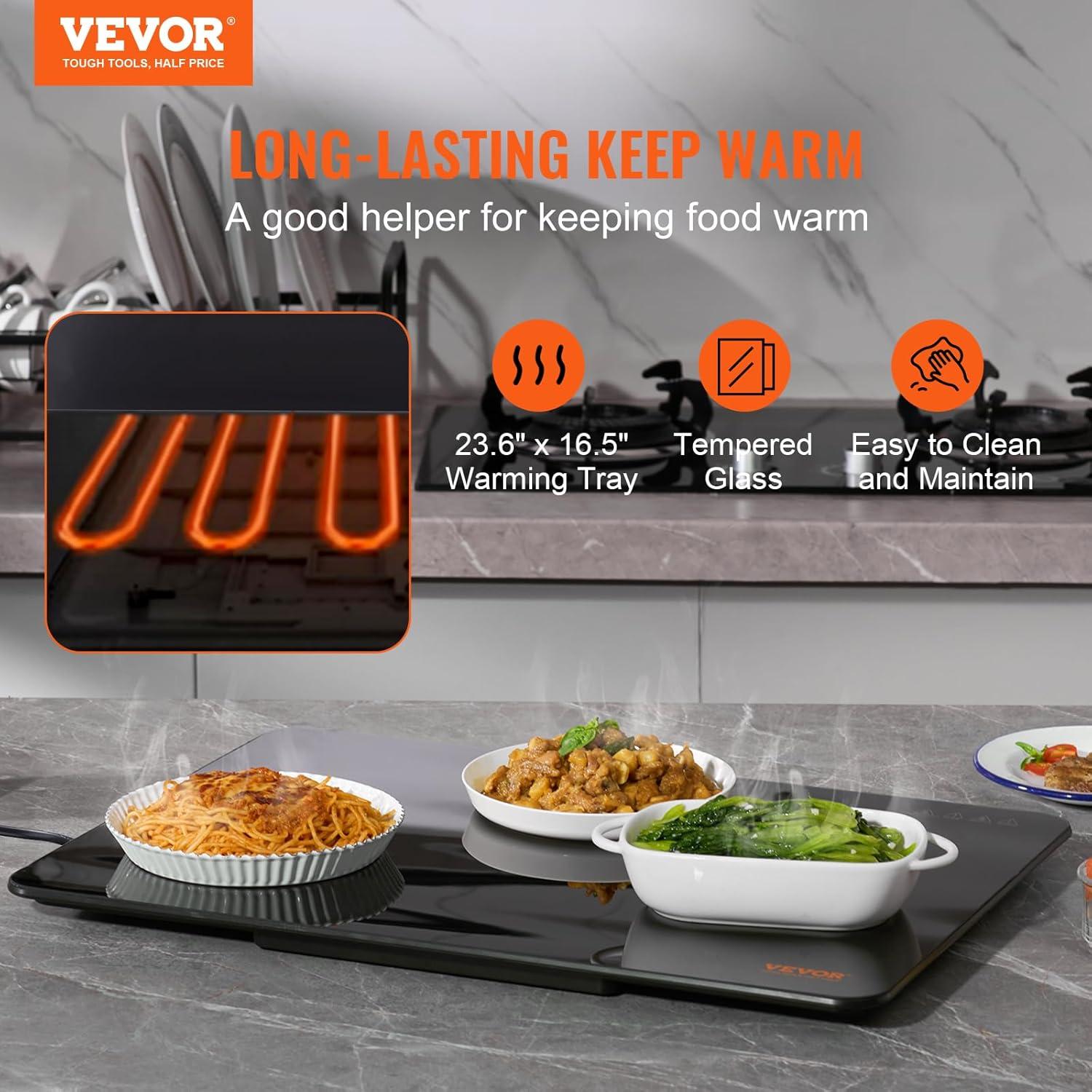 VEVOR Electric Warming Tray, Food Warming Trays for Buffet, Warming Trays with Adjustable Temperature Control, Portable Tempered Glass Food Warmer, Hot Plate Perfect for Parties, Catering, Holidays(Black)