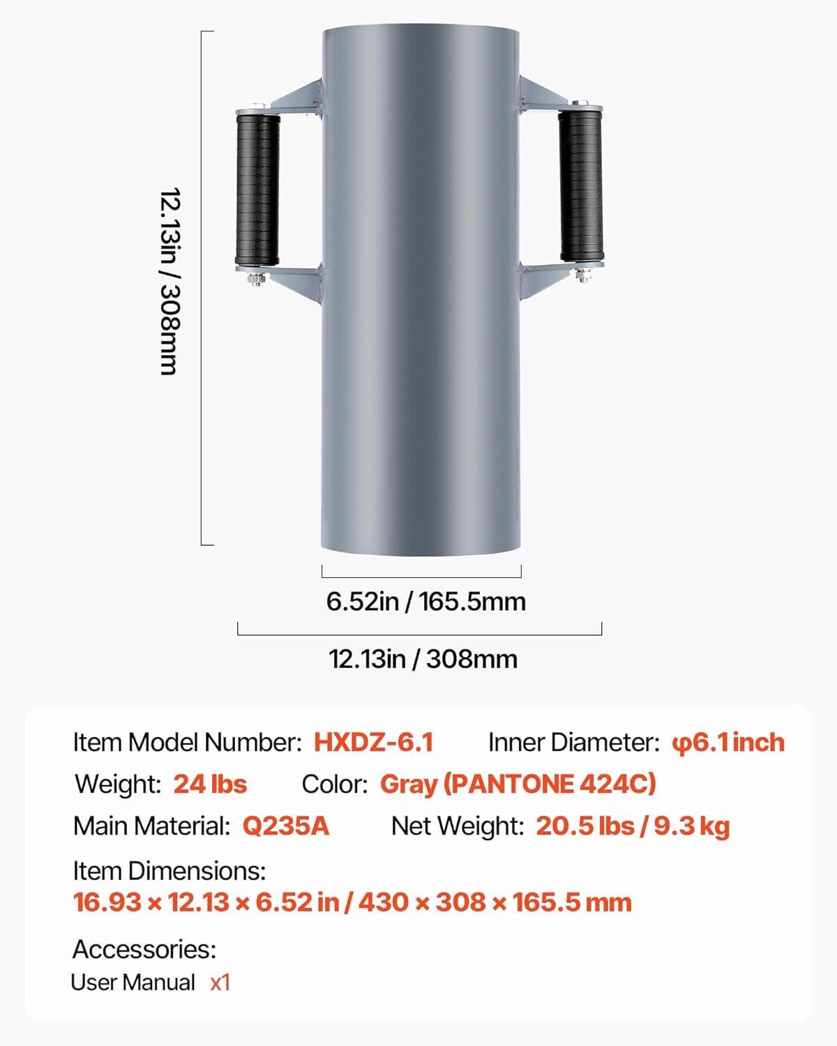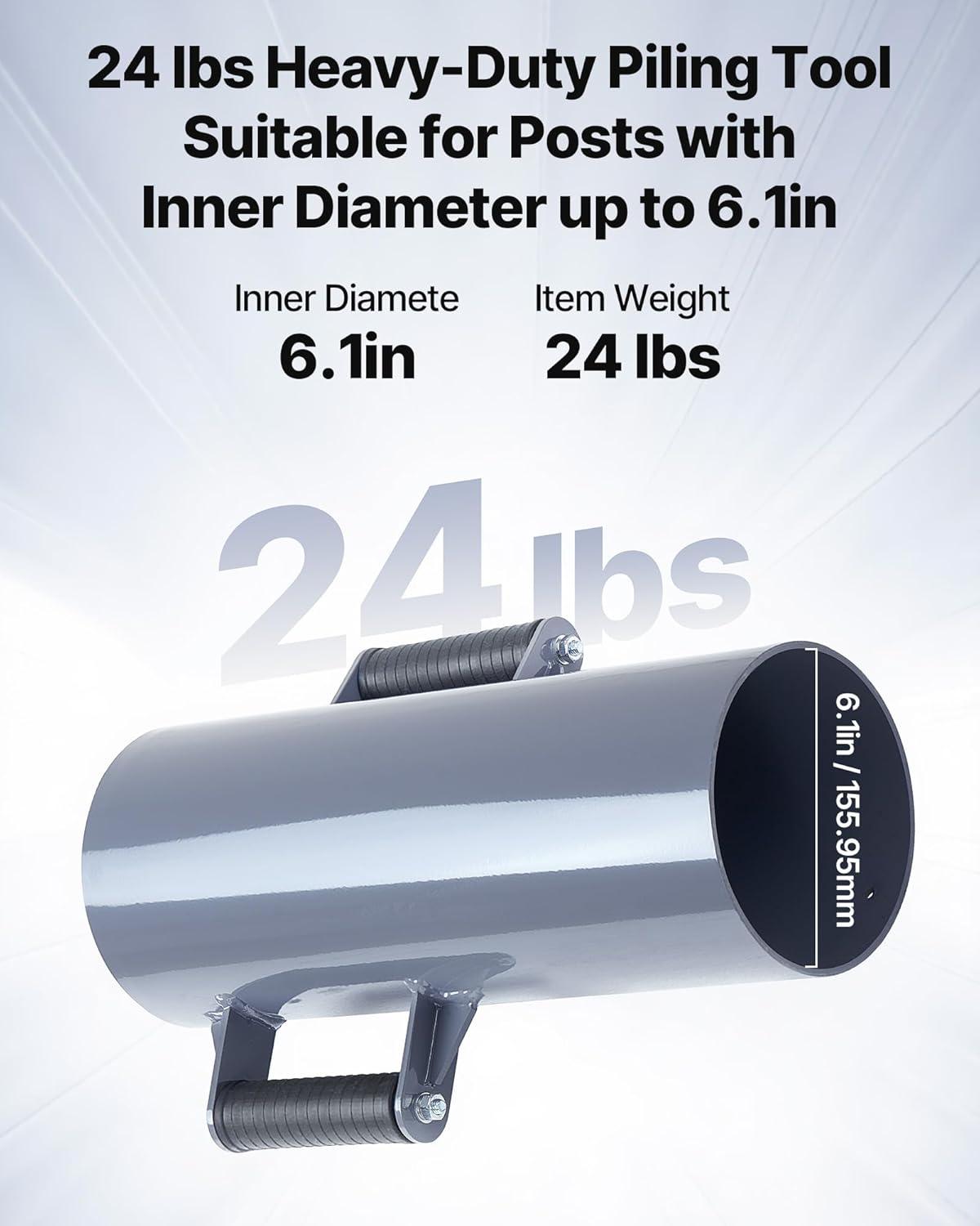 VEVOR Fence Post Driver, Heavy Duty T Post Driver with Handles, Metal Manual Pounder Rammer for U-Channel,Wooden Fence, Fits T-Posts with Inner Diameter up to 6.1in,Ideal for Farm, Garden, Yard(6.1" 24LB)