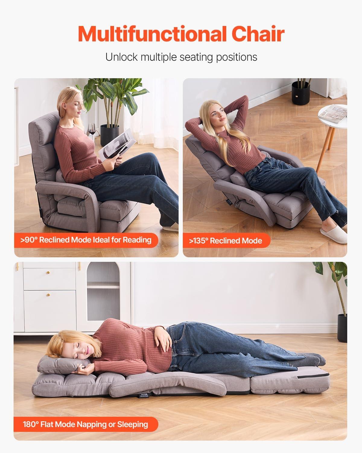 Versatile Use: This folding floor chair features adjustable positions for sitting or reclining, making it ideal for relaxation, reading, watching movies, gaming, or working from home.