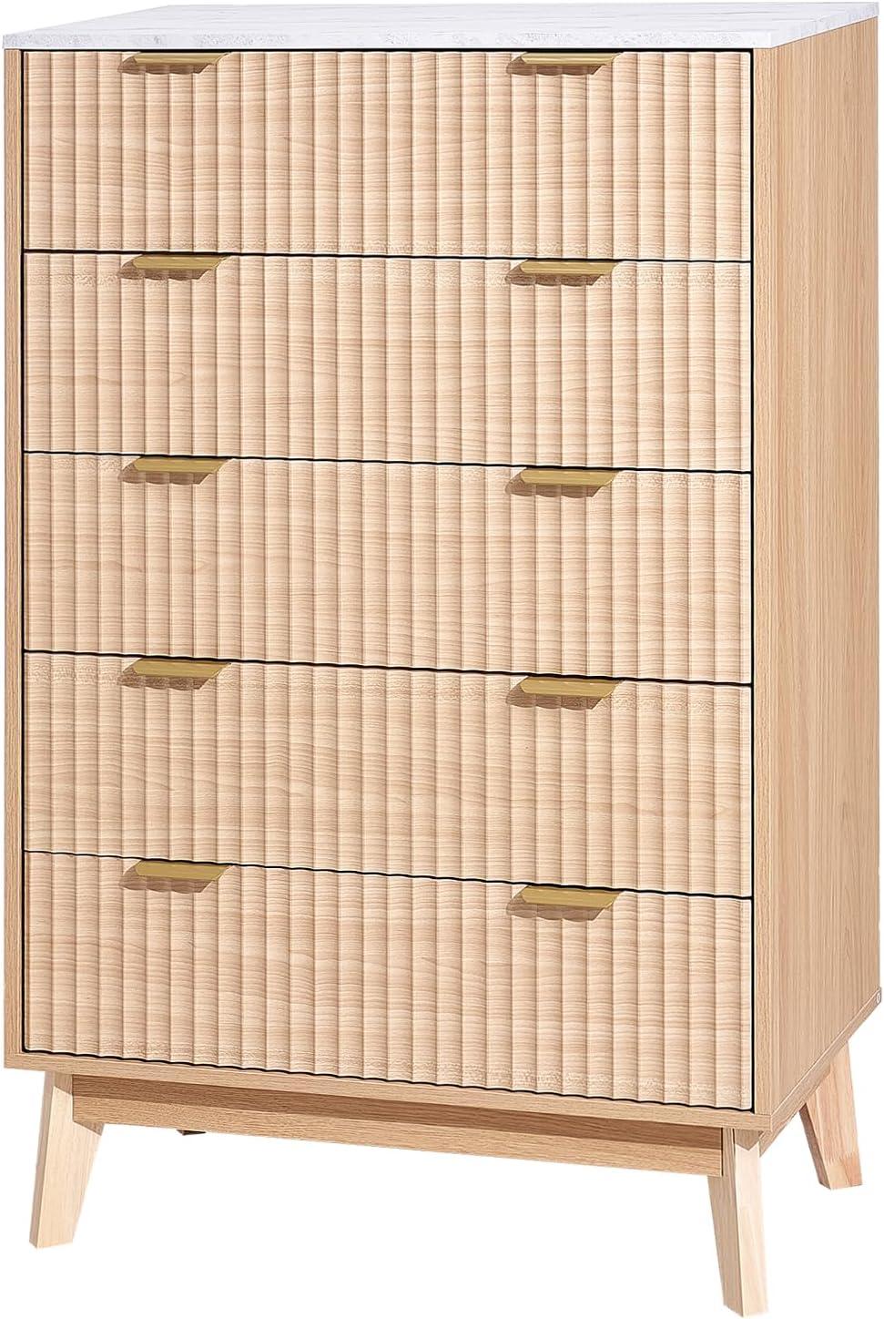 VEVOR Fluted 6 Drawer Dresser, 54" Wide Chest of Drawers with Faux Marble Top, Modern Dresser TV Stand, Wooden Closet Clothes Storage Organizer for Bedroom, Living Room, Hallway, Entryway, Natural Oak(29.5"D x 15.7"W x 48"H (7 Drawers))