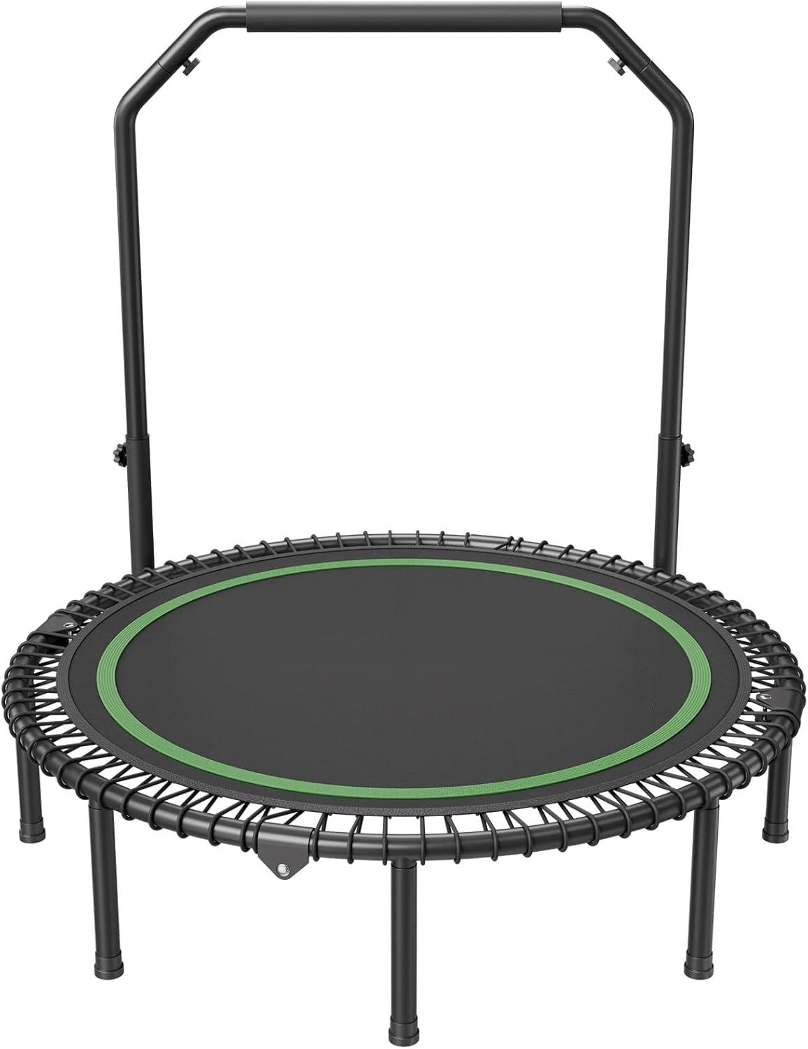 VEVOR Foldable Mini Trampoline, 51 Inch Fitness Rebounder, Max Load 450lbs Exercise Trampoline, Stable & Quiet Trampoline with 4 Level Height Adjustable Foam Handle, for Adults Indoor/Garden Workout(48″ Round Bungee cords+ Handle)