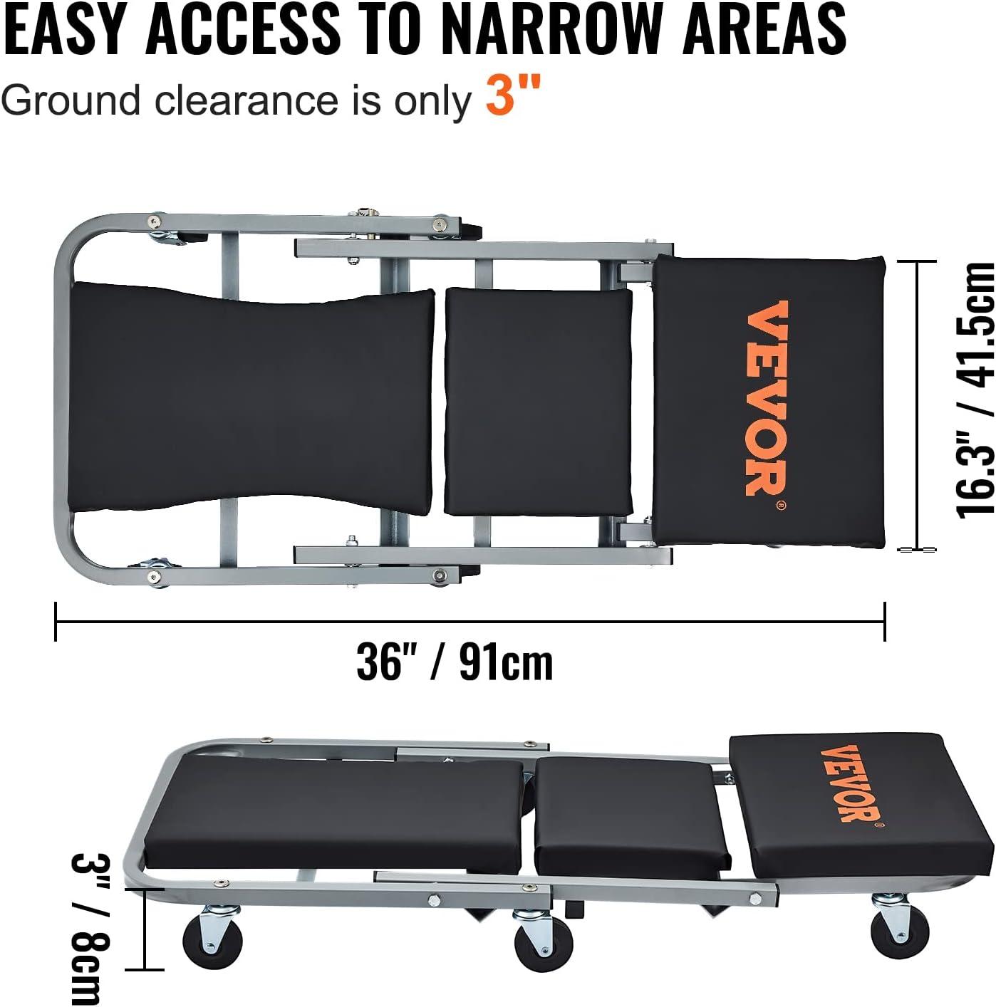 Do More with Ease: With a low ground clearance of just 5.9 inches, this mechanic creeper chair makes it easy to reach tight, low-clearance spaces, ideal for vehicle inspections and repairs. Suitable for garages, repair shops, or even home use, it saves you from the strain of crouching or lying on uncomfortable surfaces.