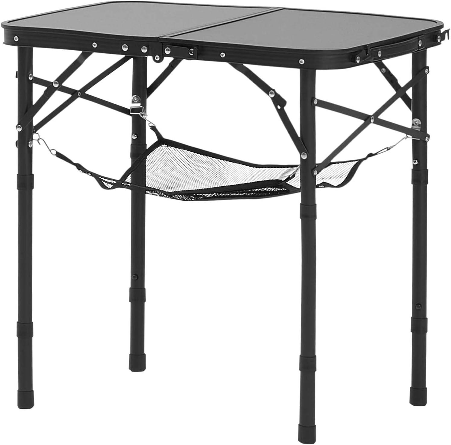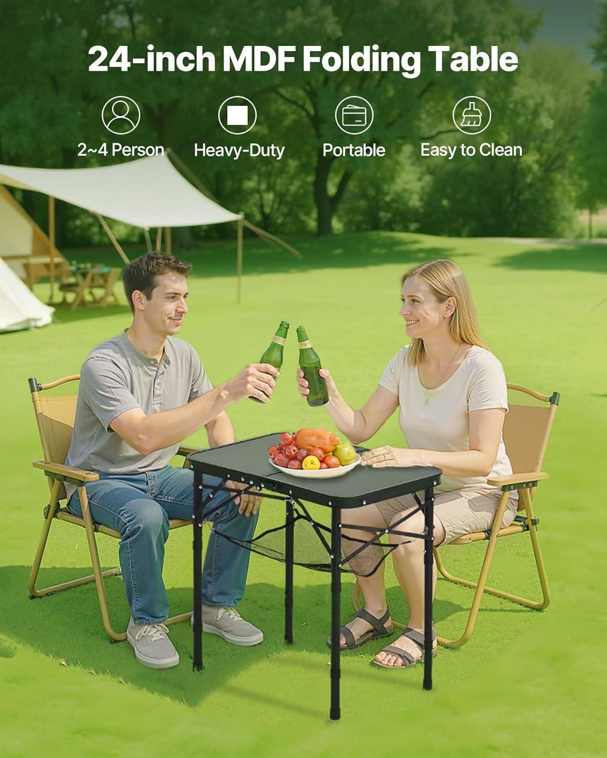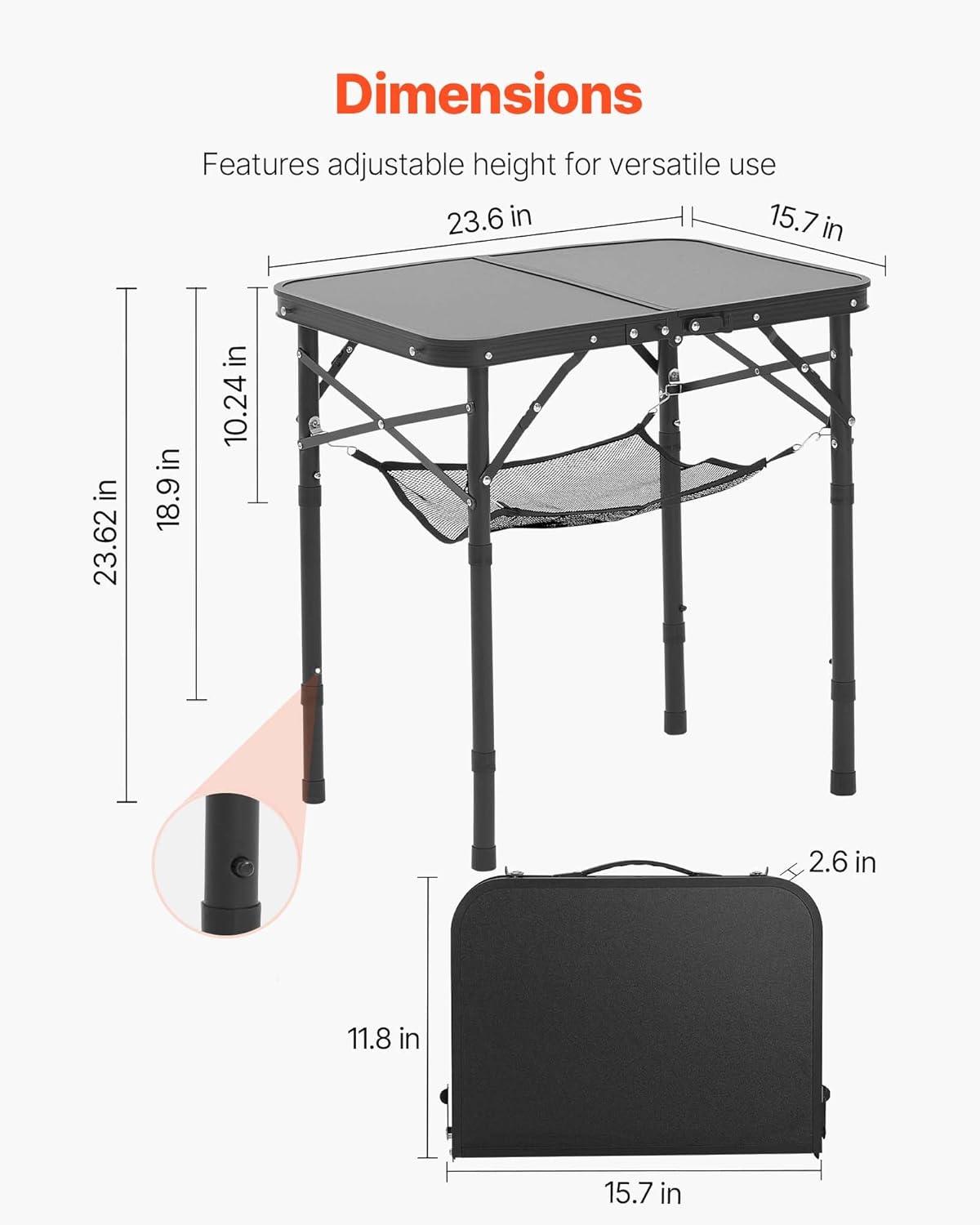 VEVOR Folding Camping Table, Adjustable Height Aluminum MDF Outdoor Portable Lightweight, for Cooking, Beach, Picnic, Travel, 24 x 16 inch(Black)