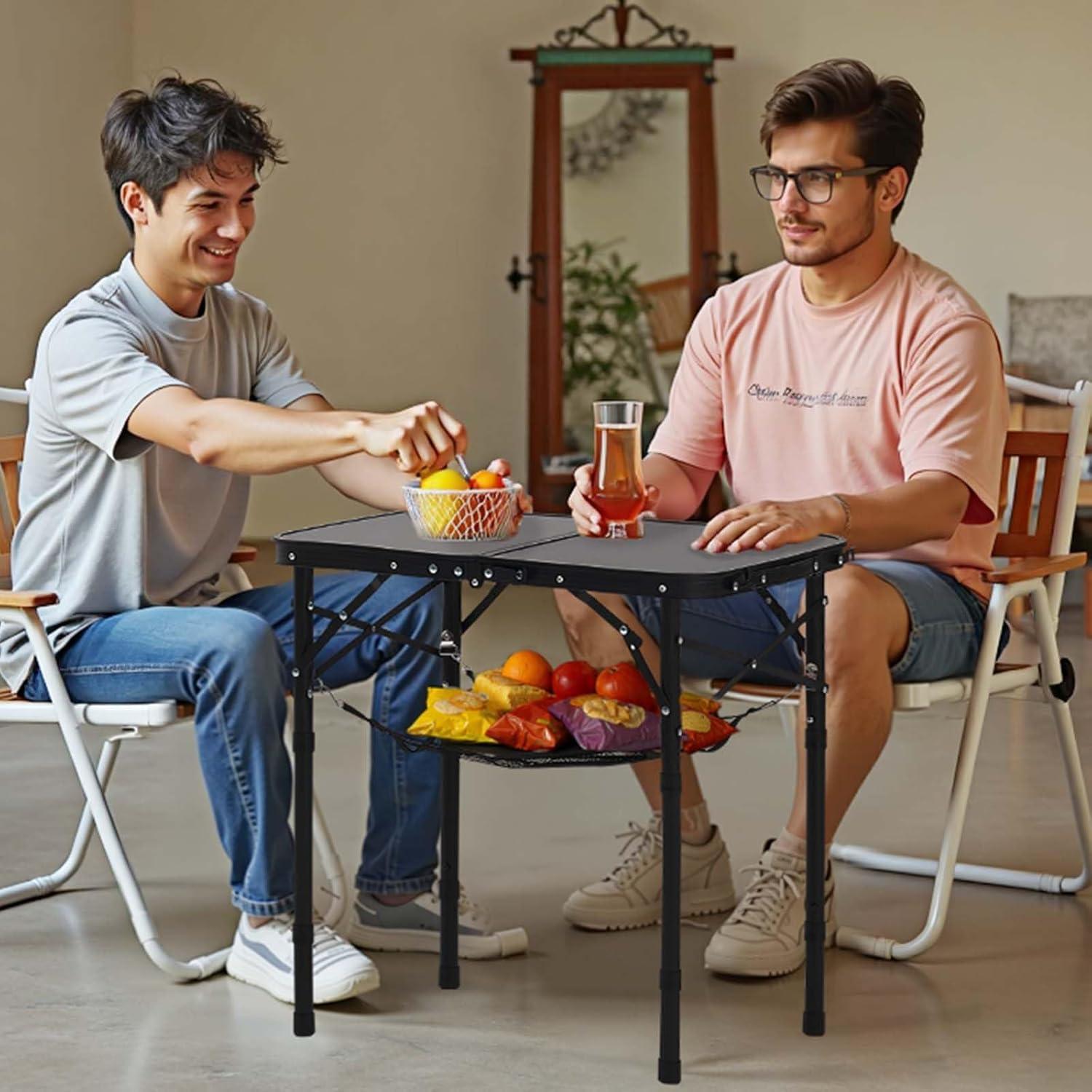 Height Adjustment​​: The camping table has a 27.6-in-wide tabletop seating 2-4 adults. Lightweight frame and compact fold make transport easy for parks, concerts, or tailgates