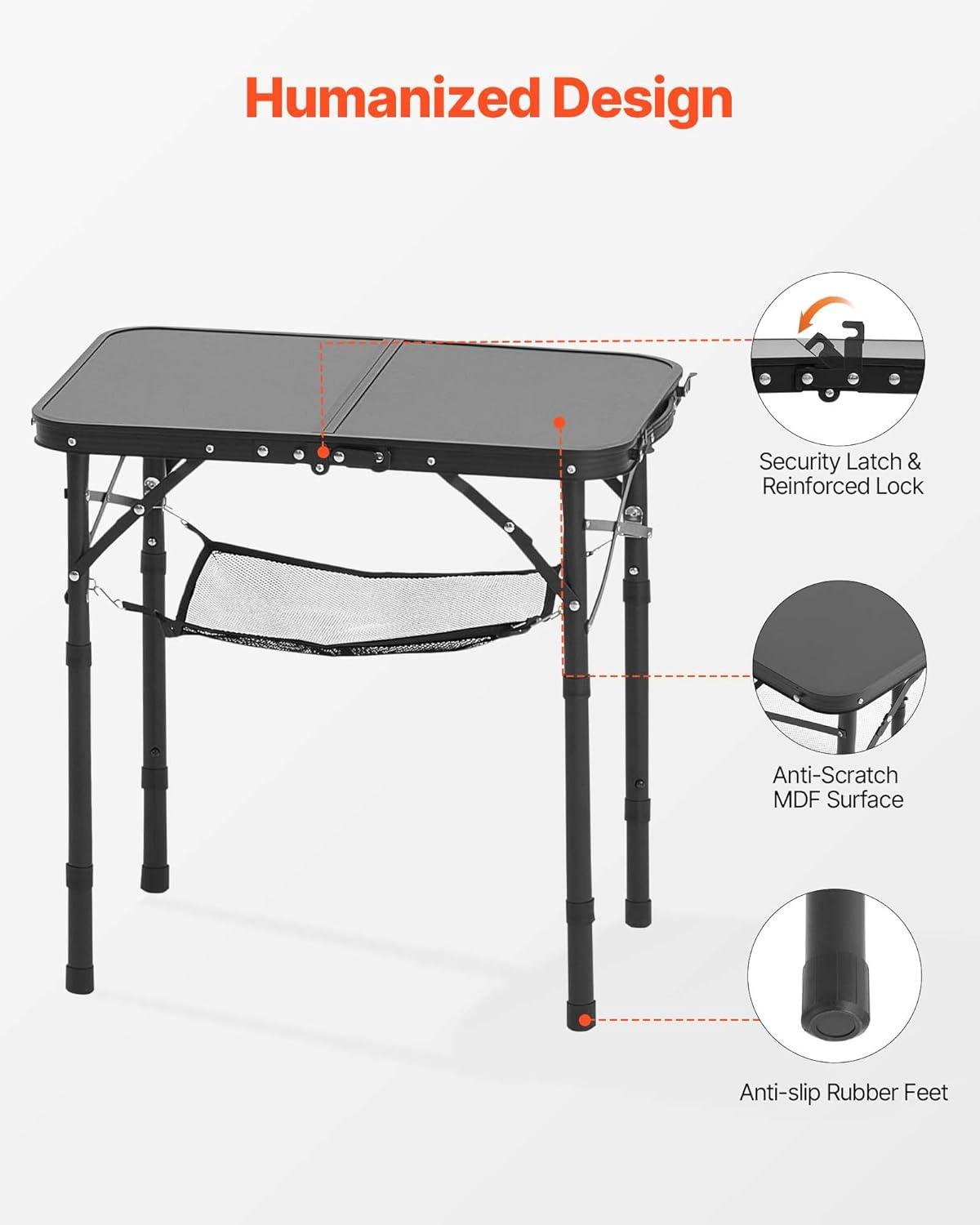 Be the first to review “VEVOR Folding Camping Table, Adjustable Height Aluminum MDF Outdoor Portable Lightweight, for Cooking, Beach, Picnic, Travel, 24 x 16 inch(Black)”