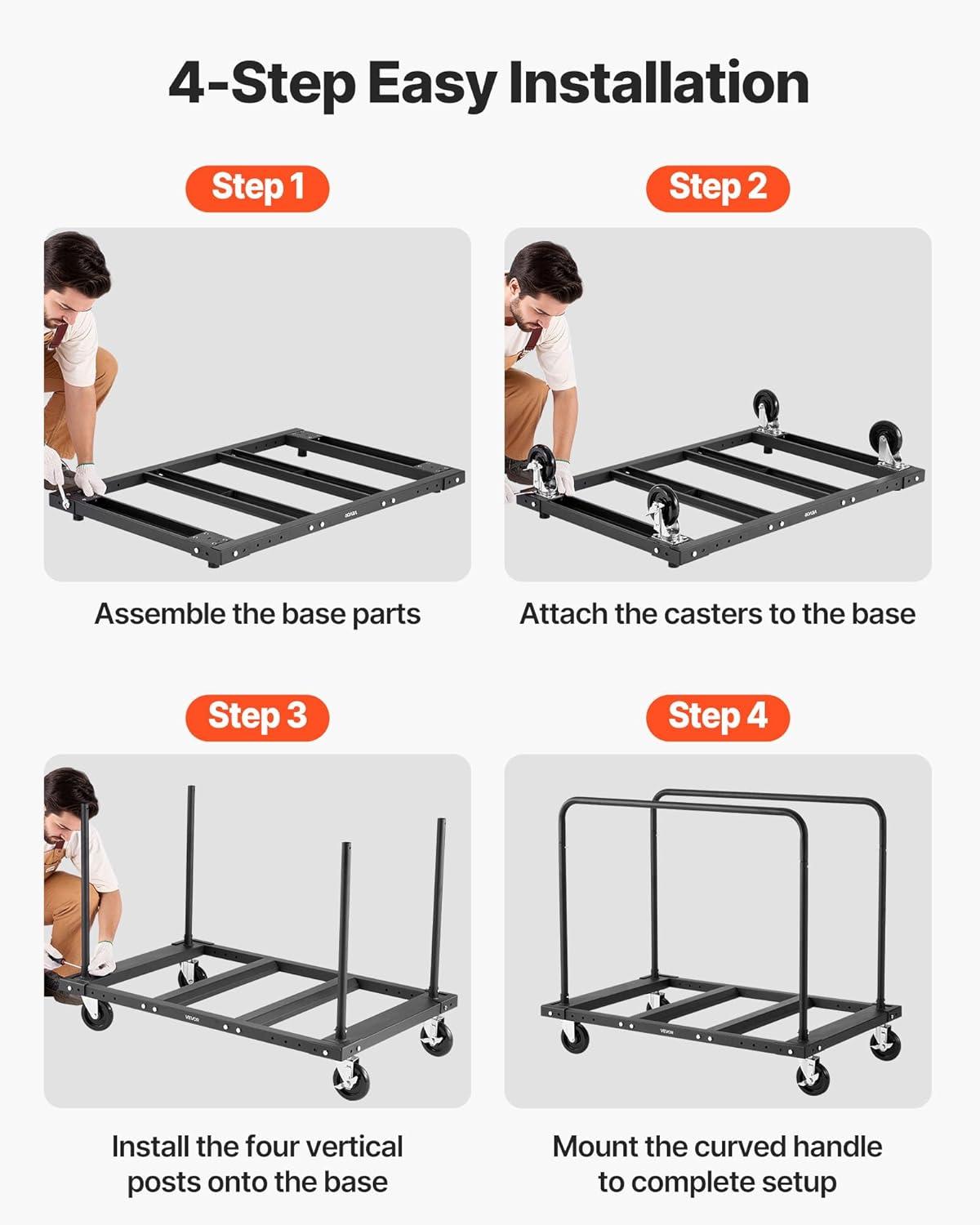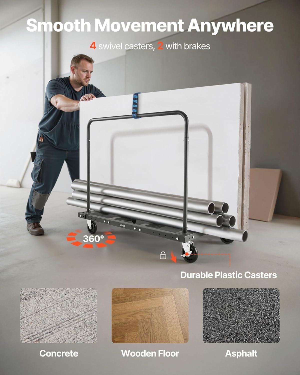 Easy one-person Installation: Setting up the drywall cart is a breeze, requiring only one person. With a simple two-step installation process—attaching the wheels and installing the handle—you can quickly get it ready for use. When not in use, the drywall sheet cart can be easily disassembled for compact storage without taking up much space.