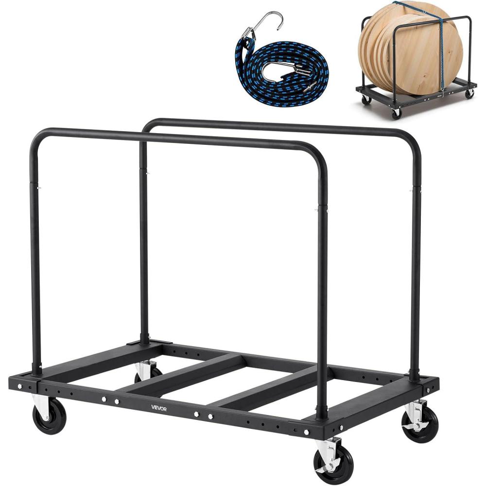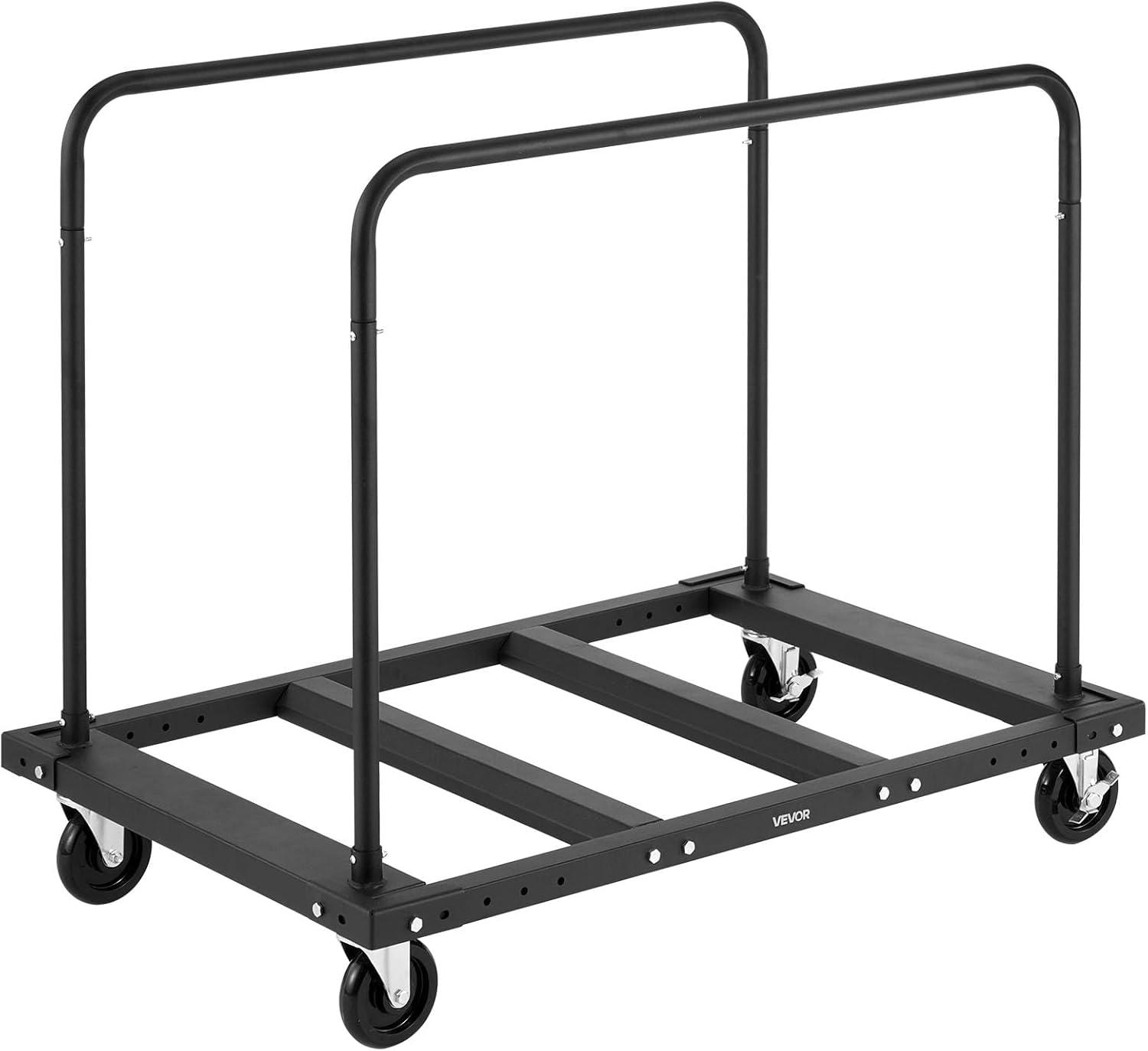 VEVOR Folding Table Cart, 1800 LBS Heavy Duty Table Trolley with 5" Swivel Wheels, Black Desk Trolley for Garage, Home, Warehouse, Party Event Hotel Furniture 10 Table Capacity(1800LBS - NEW)