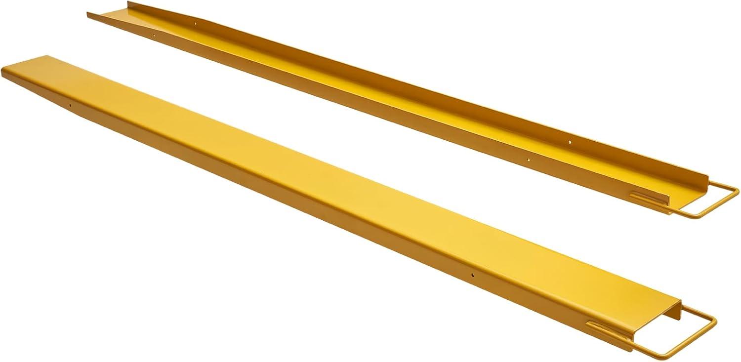 【Durable Forklift Extensions】 Our forklift extensions are crafted from top-quality Q235 carbon steel, no bending or breaking under heavy loads, ensuring long-lasting performance. Just slide the extensions onto your current pallet forks and you are all set! Tips: You should choose the forklifts extension which size is no longer than twice the length of your forklift's fork. Place the pallet fork extension as close as possible to the inside of the forks.