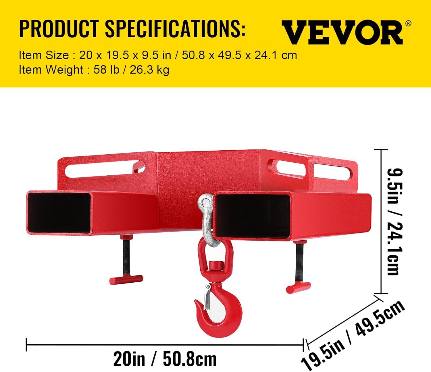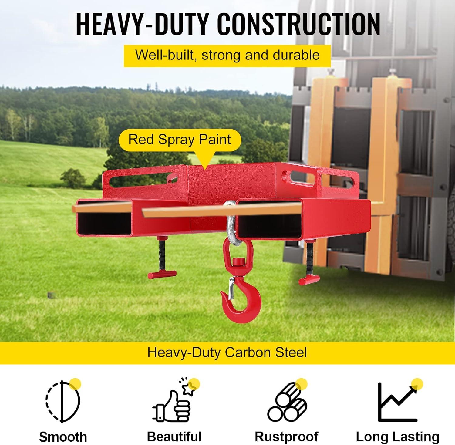 VEVOR Forklift Lifting Hook, 4400lbs Capacity Forklift Lifting Hoist, Red Forklift Mobile Crane with Swivel Hook and Two Large T-Screws, Hook Forklift Lifting Hoist, Fork Lifting Attachment(4400 LBS)