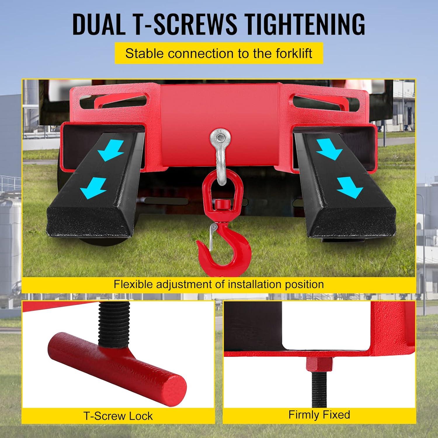 imageVEVOR Forklift Lifting Hook 4400lbs Capacity Forklift Lifting Hoist Red Forklift Mobile Crane with Swivel Hook and Two Large TScrews Hook Forklift Lifting Hoist Fork Lifting Attachment4400 LBS