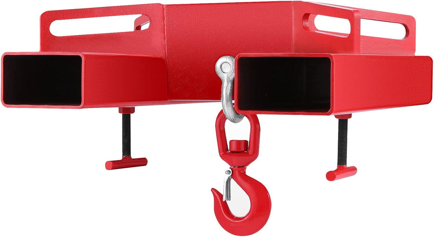 VEVOR Forklift Lifting Hook, 4400lbs Capacity Forklift Lifting Hoist, Red Forklift Mobile Crane with Swivel Hook and Two Large T-Screws, Hook Forklift Lifting Hoist, Fork Lifting Attachment(6600LBS)