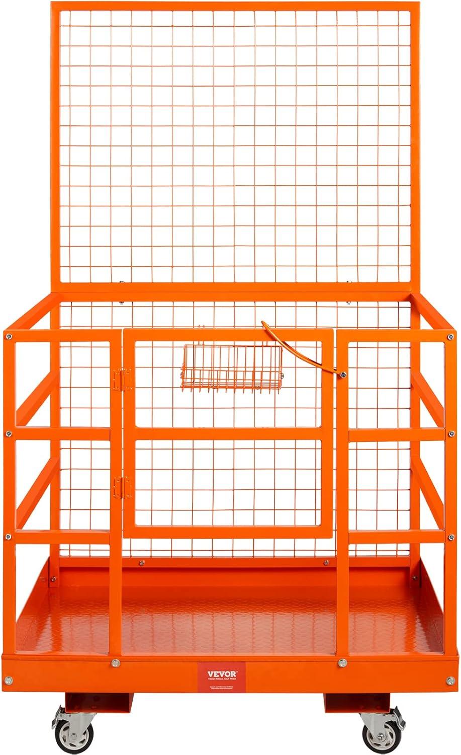VEVOR Forklift Safety Cage, 36 x 36 Inches Foldable Forklift Work Platform of 1200 lbs Load Capacity with Lockable Swivel Wheels, Drain Hole & Device Chain, Holds 1 to 2 Adults, Ideal for Aerial Work(43"x45" with Wheels)