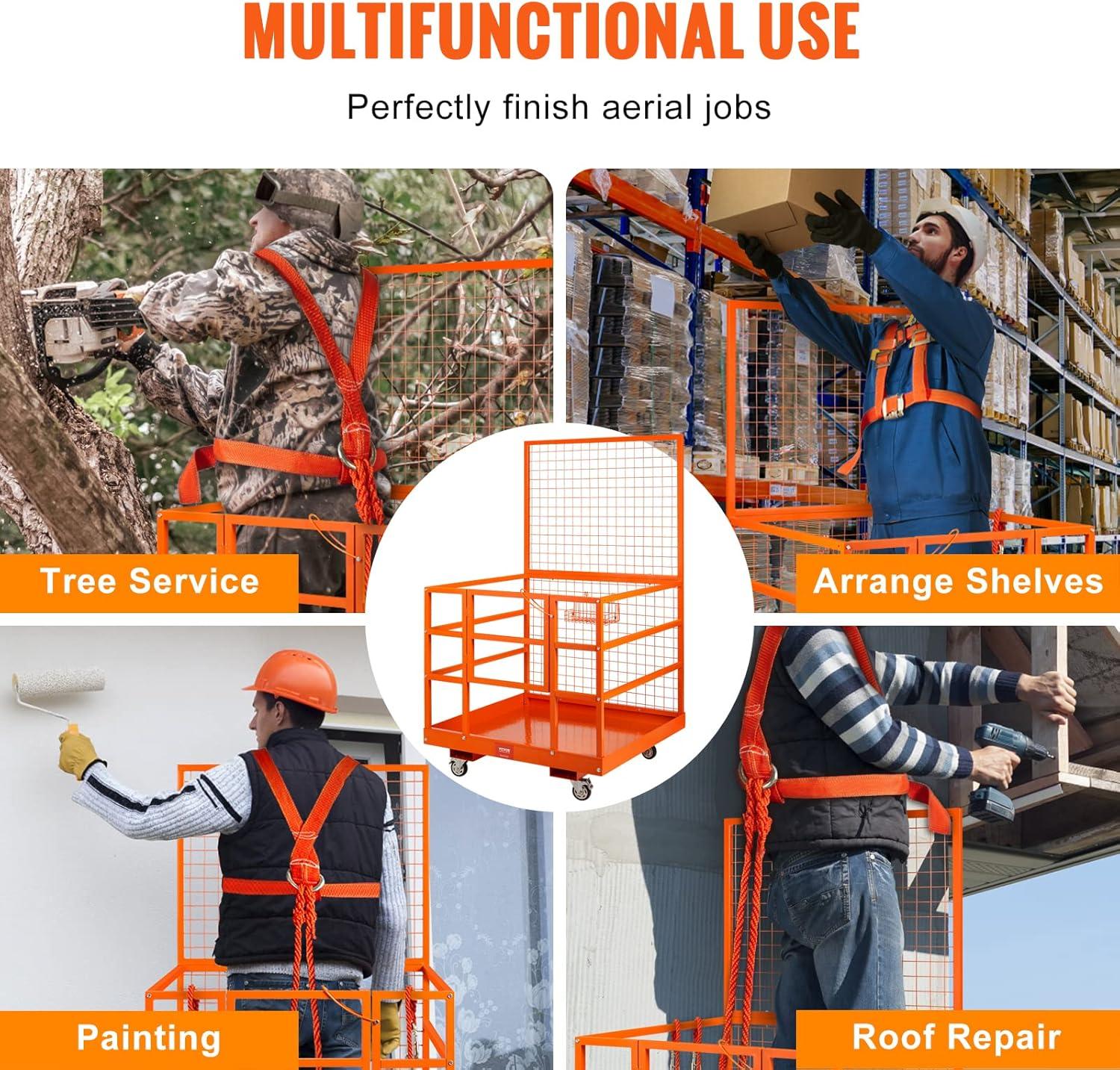 Powerful Load Capacity: Our forklift safety cage supports up to 1200 lbs, holding 1-2 adults with excellent balance, and is compatible with any standard forklift and pallet handling device