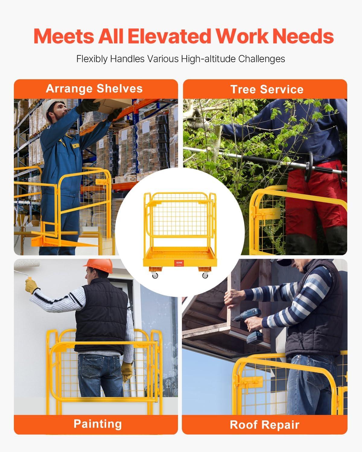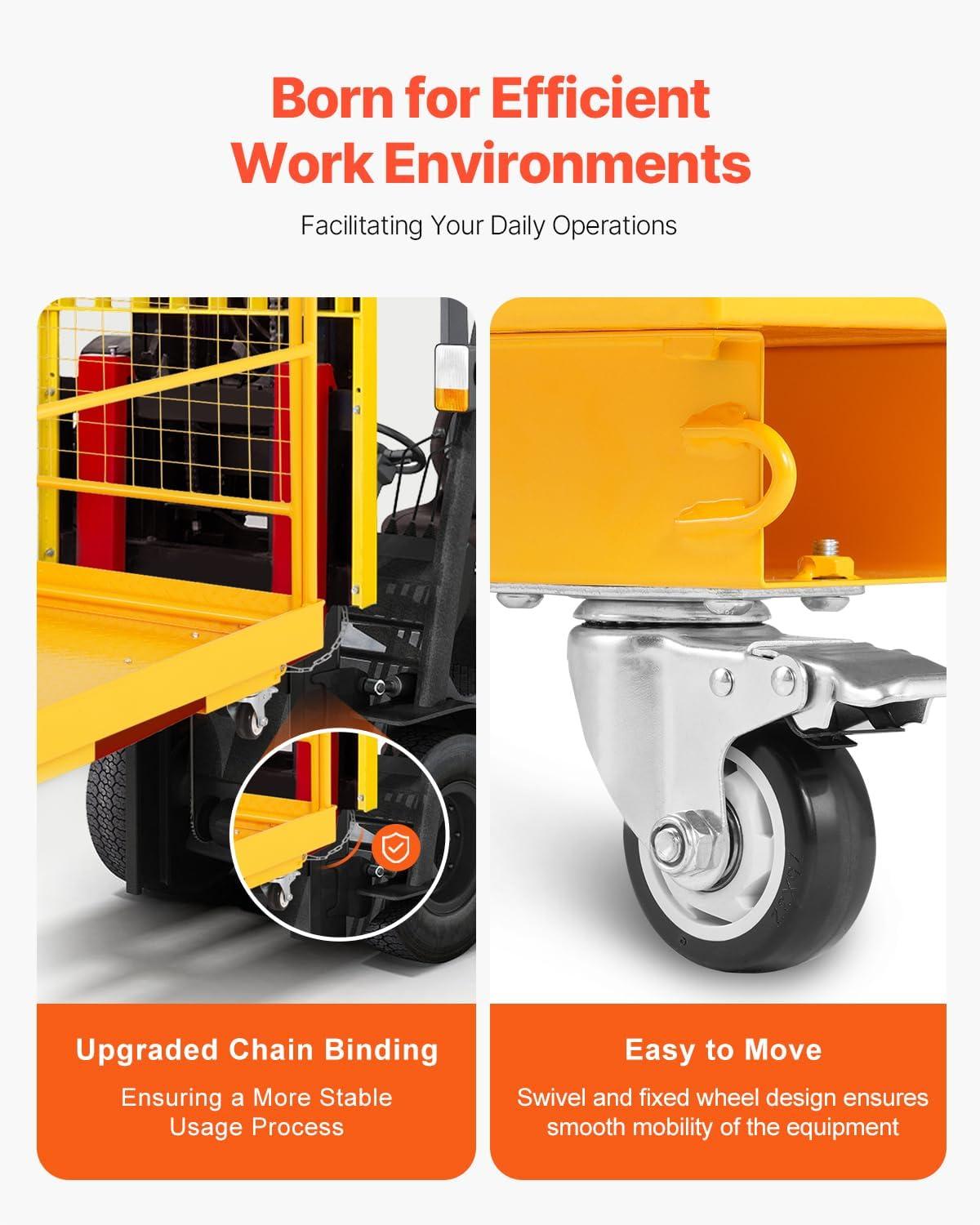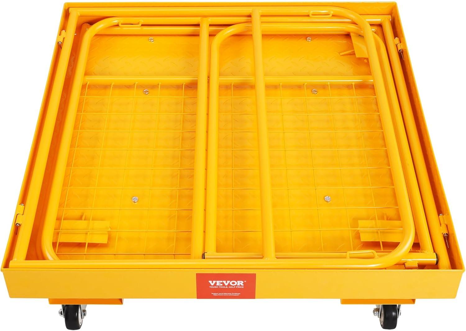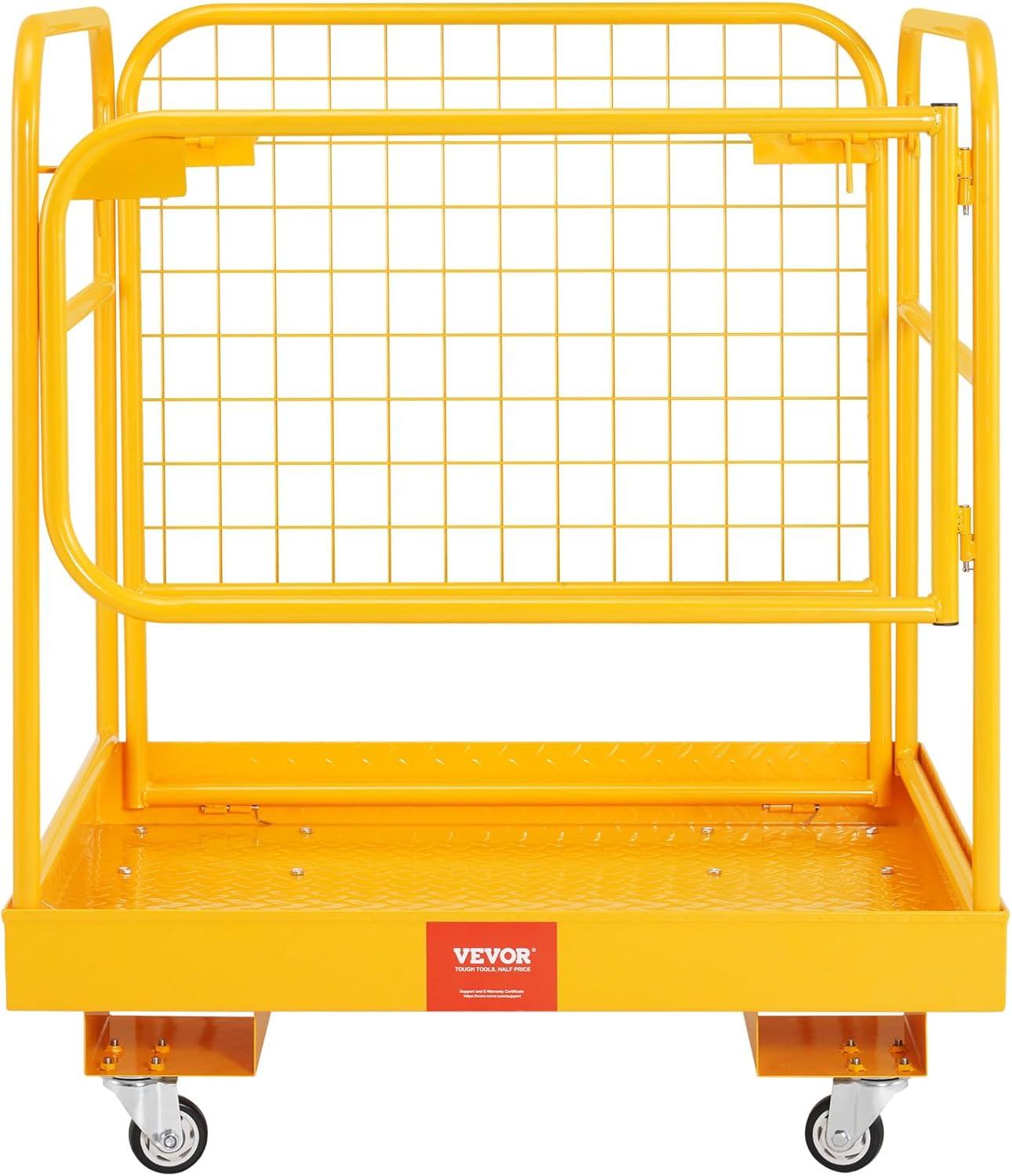 VEVOR Forklift Safety Cage, 36 x 36 Inches Foldable Forklift Work Platform of 1200 lbs Load Capacity with Lockable Swivel Wheels, Drain Hole & Device Chain, Holds 1 to 2 Adults, Ideal for Aerial Work(36″x36″ with Wheels)