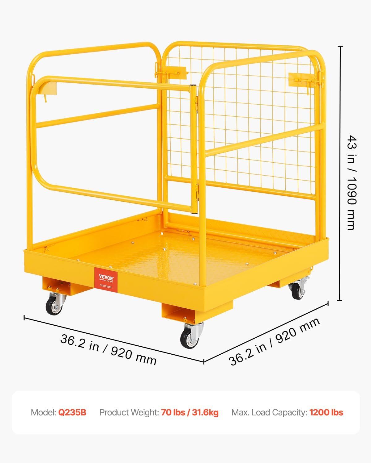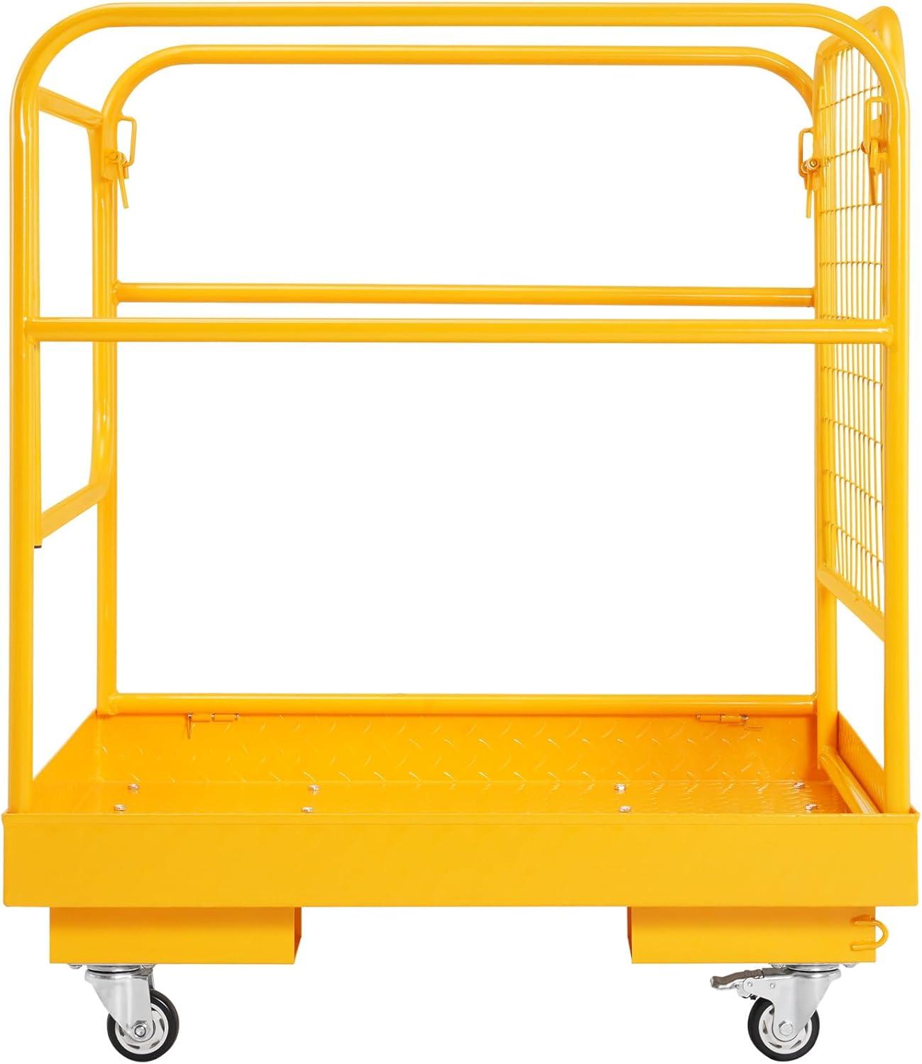 VEVOR Forklift Safety Cage, 36 x 36 Inches Foldable Forklift Work Platform of 1200 lbs Load Capacity with Lockable Swivel Wheels, Drain Hole & Device Chain, Holds 1 to 2 Adults, Ideal for Aerial Work(36"x36" with Wheels)