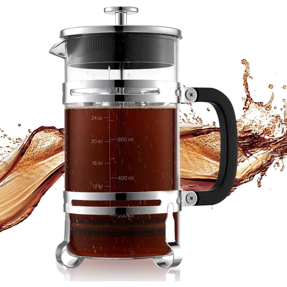 Clear Glass: Made of premium borosilicate glass, this French press coffee maker is heat-resistant, impact-resistant, and crystal clear—letting you enjoy the full brewing process with improved visibility and experience
