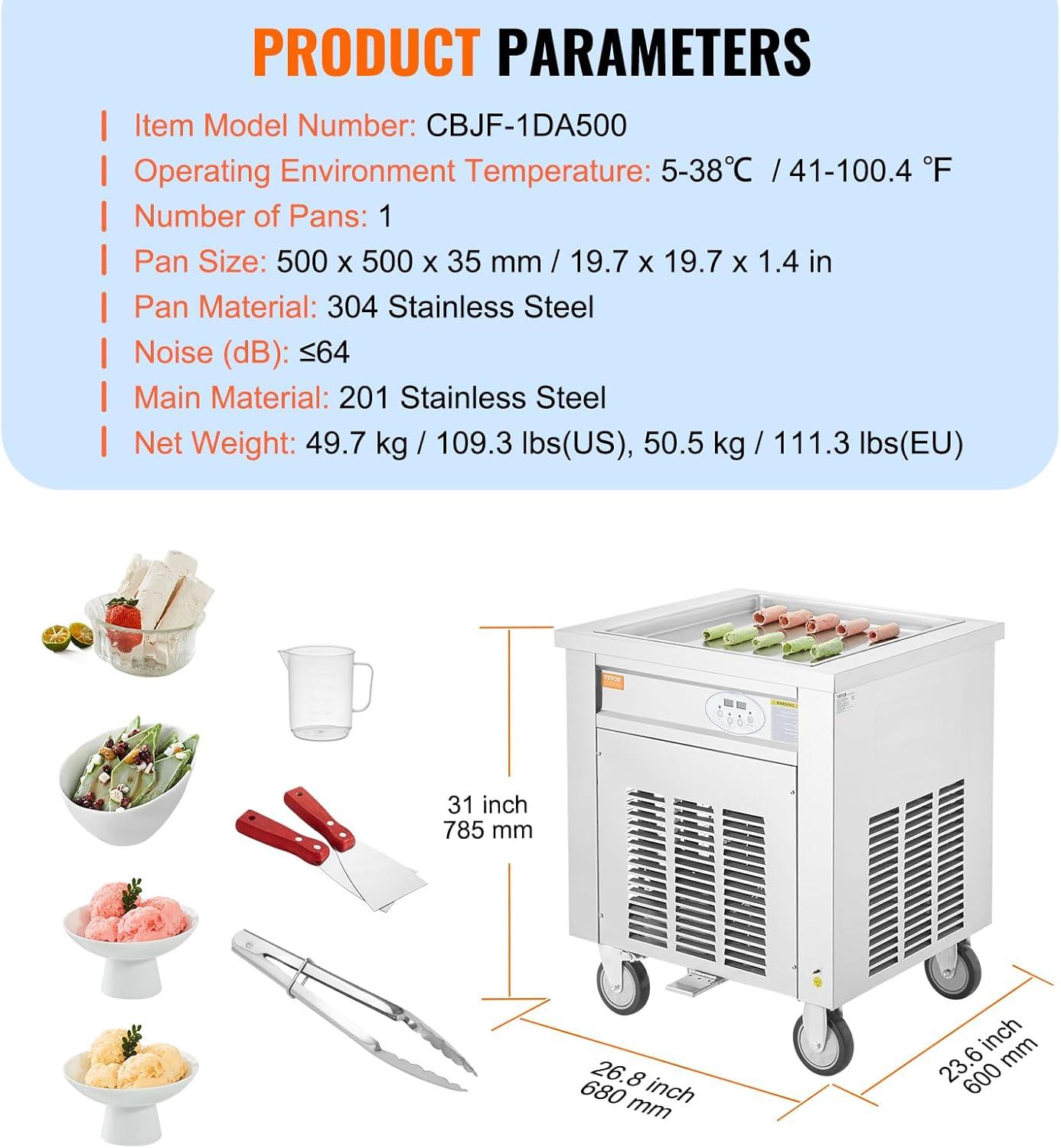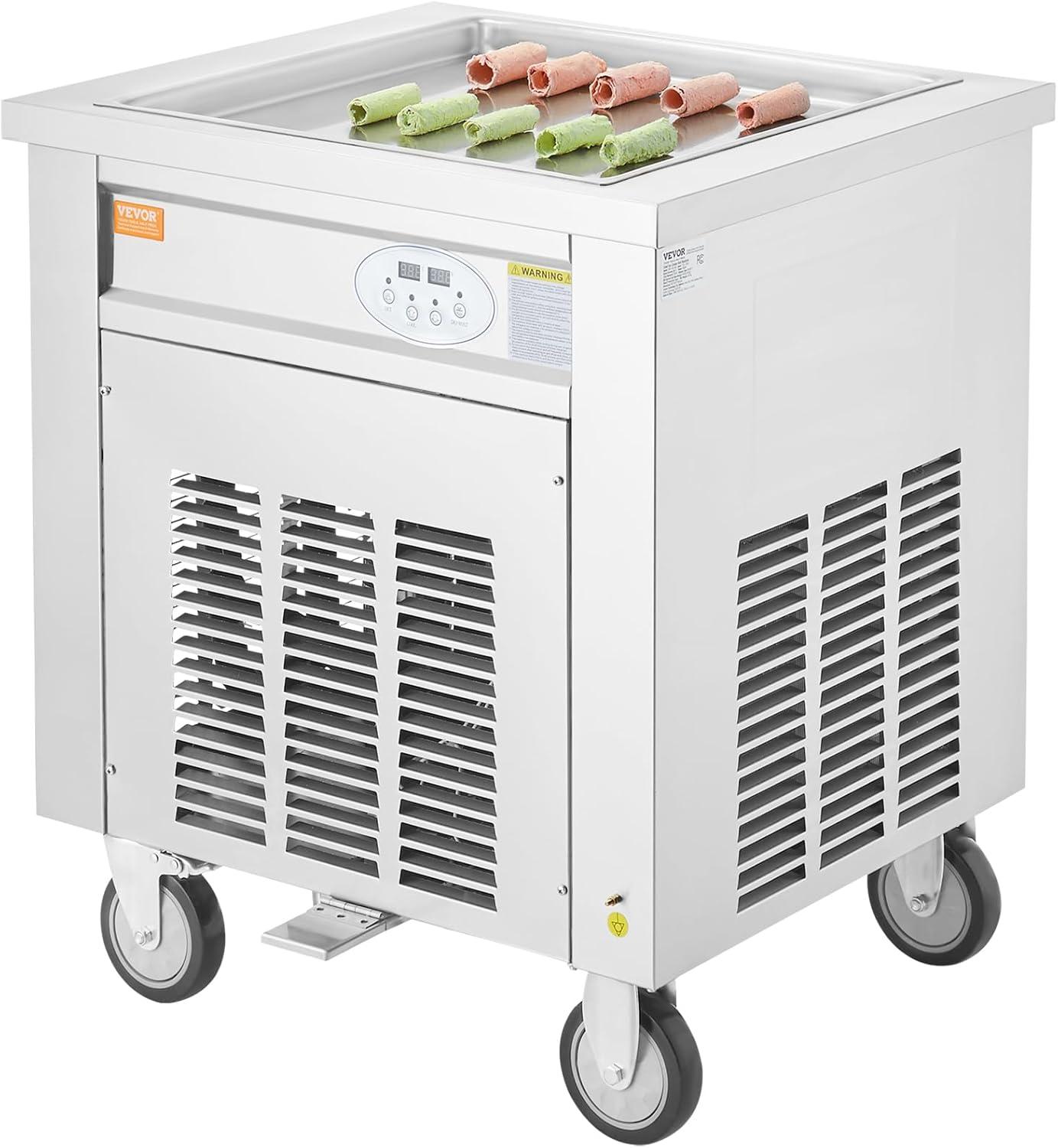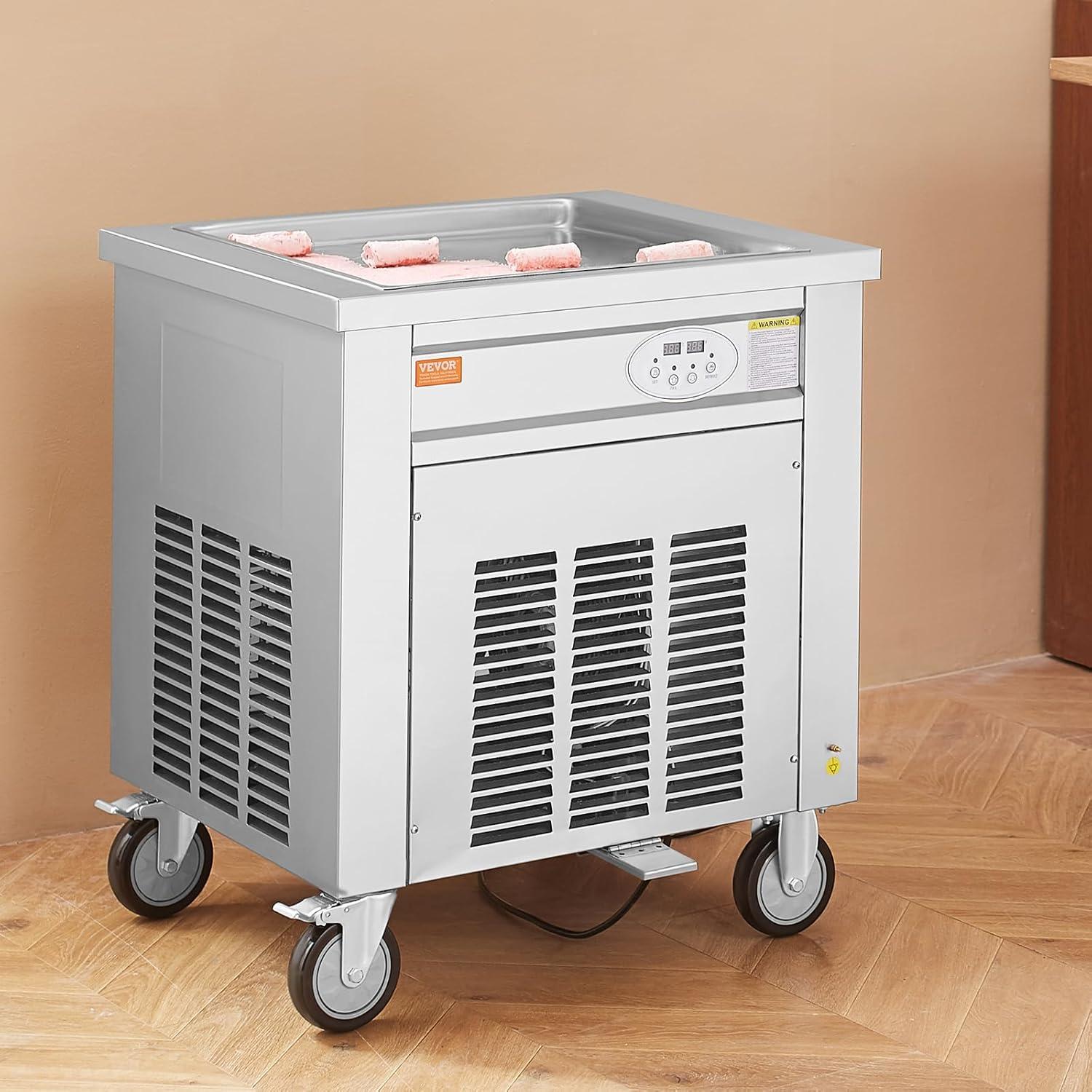 Get your hands on our newest VEVOR Fried Ice Cream Roll Machine, 2Pcs 13.8" x 13.8" Square Stir-Fried Ice Cream Pans, Stainless Steel Commercial Rolled Ice Cream Maker with Compressor and 4 Scrapers, for Ice Cream, Frozen Yogurt(960W-single pan) and enjoy a limited-time discount offer.