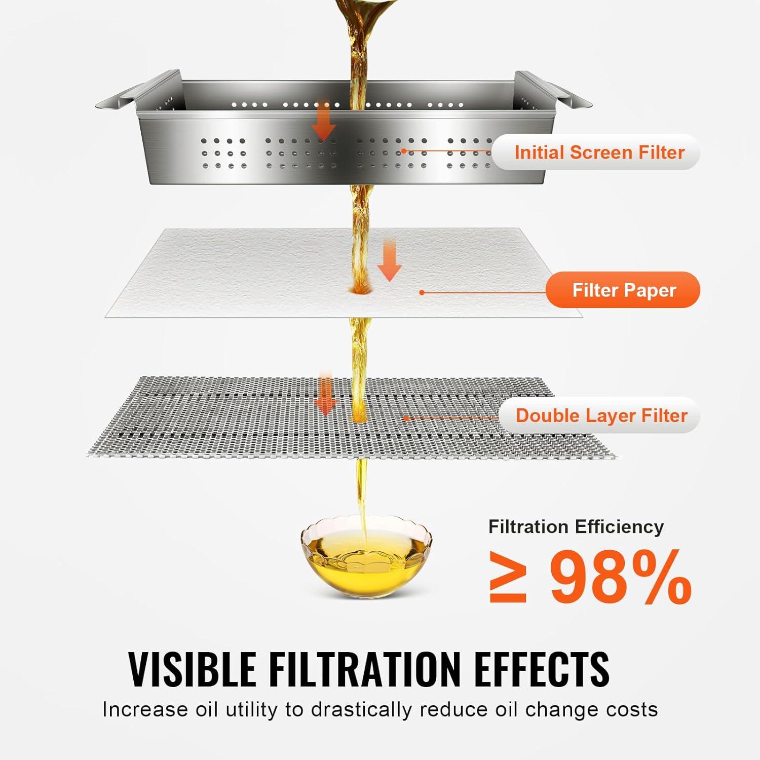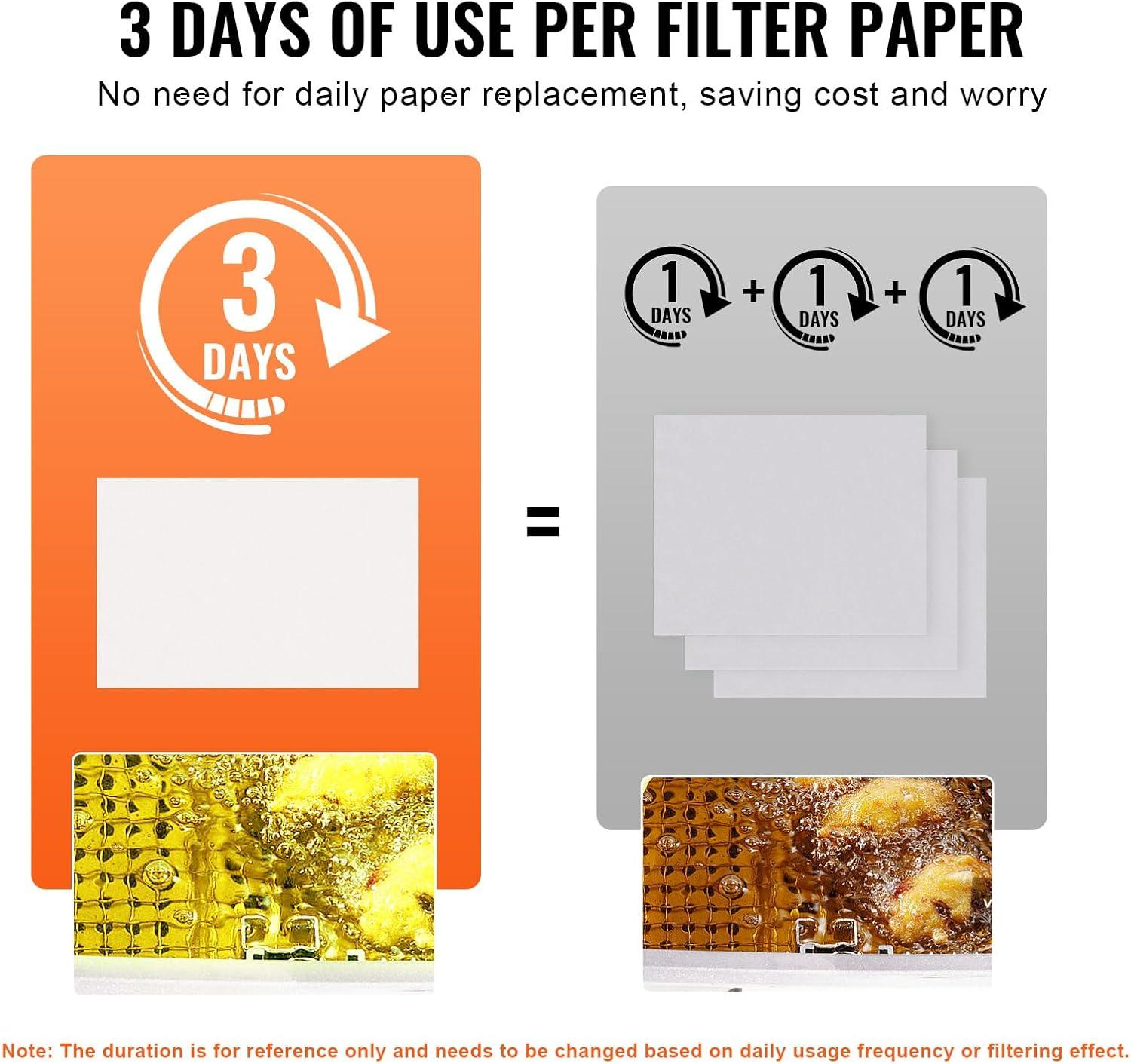 Save Your Costs: When used with our VEVOR fryer filter, these fryer filter sheets team up with the initial filter screen and double-layer oil filter screen to kick out over 98% of impurities from used oil. That means fewer oil changes and lower costs!