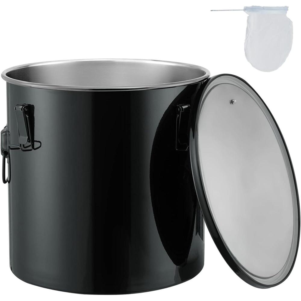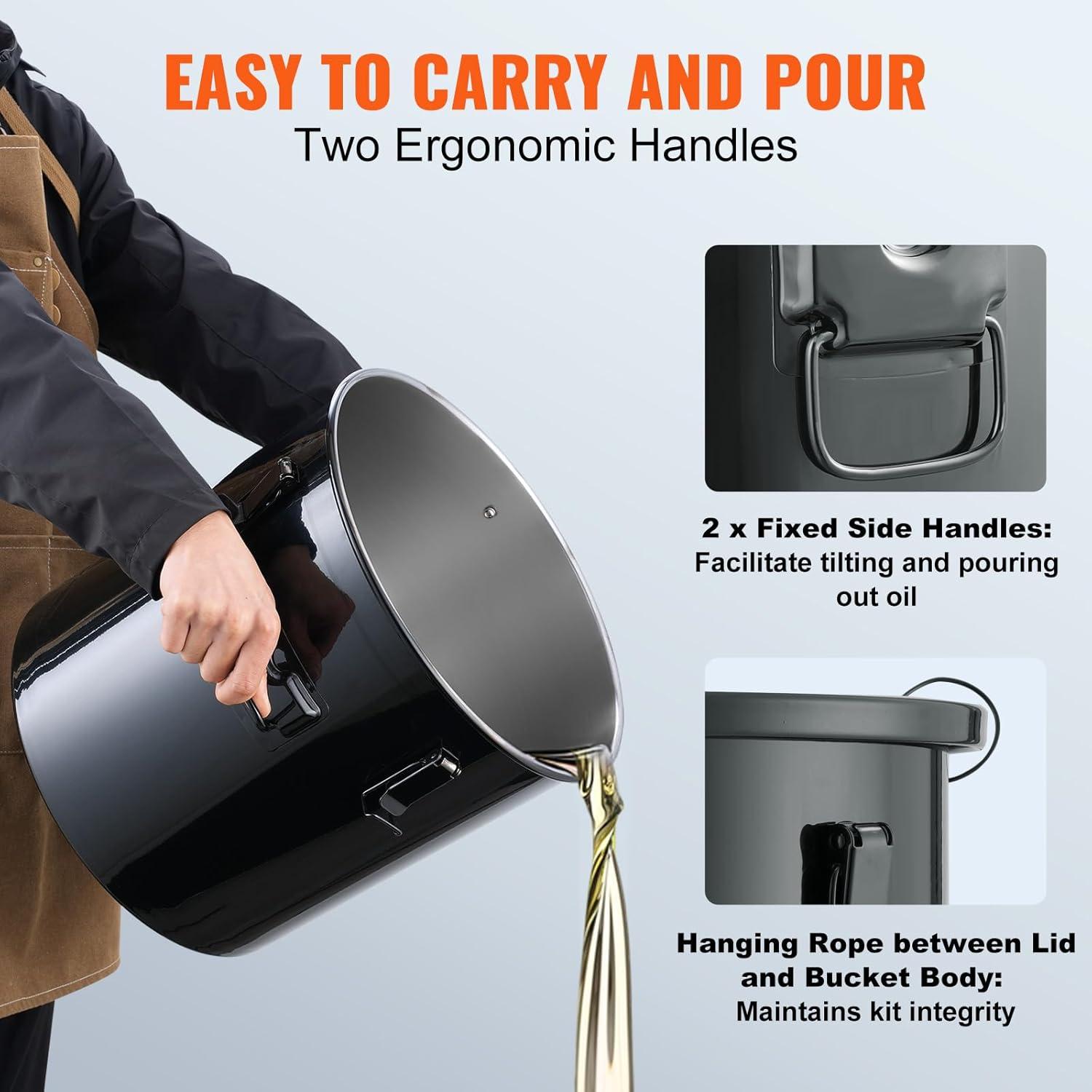 imageVEVOR Fryer Grease Bucket 10 Gal Oil Disposal Caddy Carbon Steel Fryer Oil Bucket with RustProof Coating Oil Transport Container with Lid Lock Clips Filter Bag for Hot Cooking Oil FilteringBlack