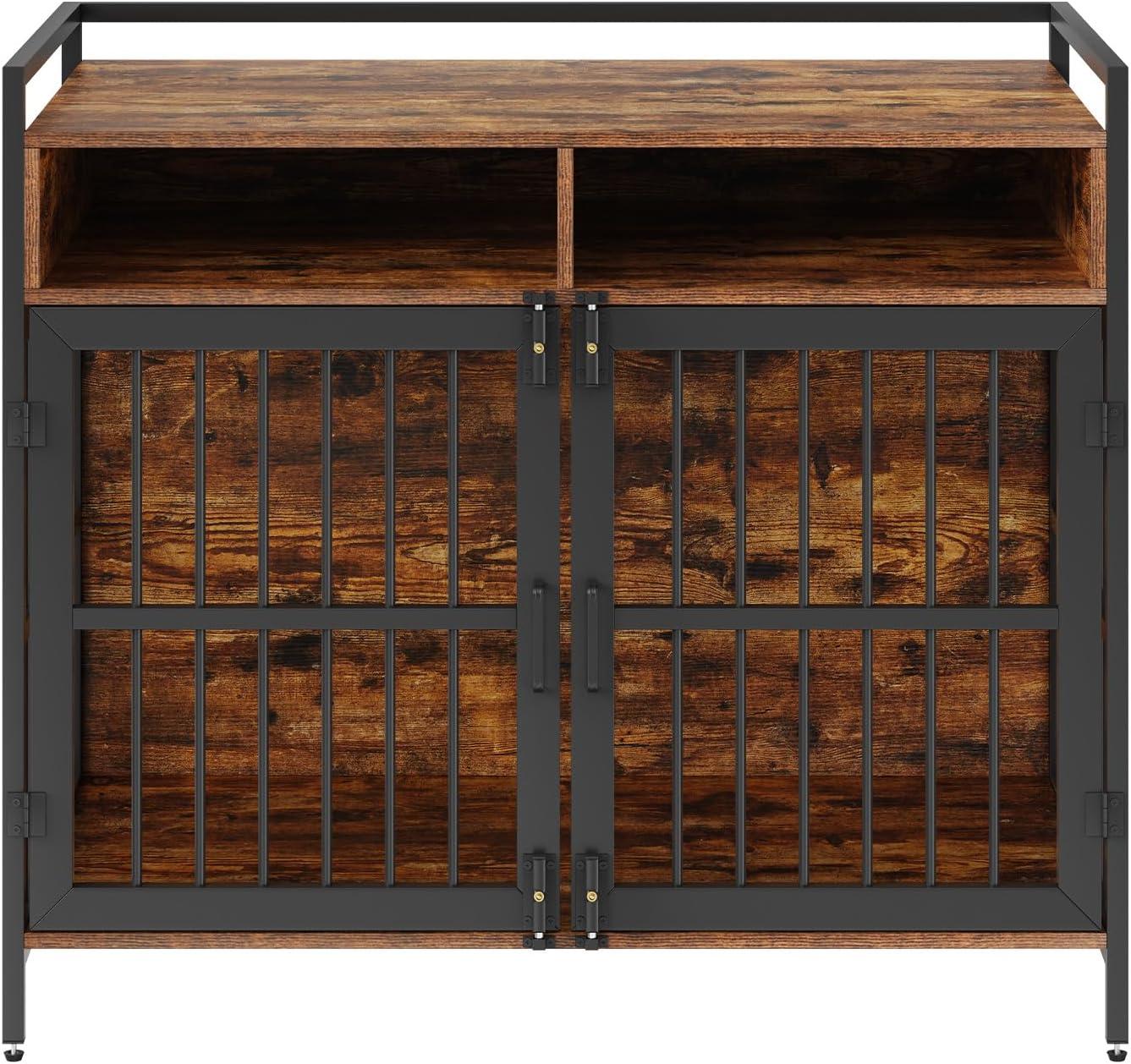 VEVOR Furniture Style Dog Crate with Storage, 41 inch Dog Crate Furniture Large Breed with Double Doors, Wooden Dog Cage for Large/Medium Dog Indoor, Hold up to 70 lbs, Rustic Brown(41.0"L x 23.6"W x 36.2"H)