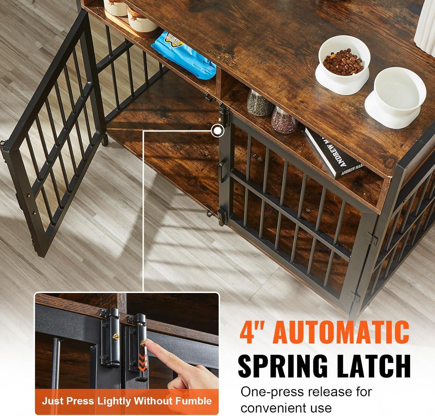VEVOR Furniture Style Dog Crate with Storage, 41 inch Dog Crate Furniture Large Breed with Double Doors, Wooden Dog Cage for Large/Medium Dog Indoor, Hold up to 70 lbs, Rustic Brown(32.5″L x 21.9″W x 25.2″H)