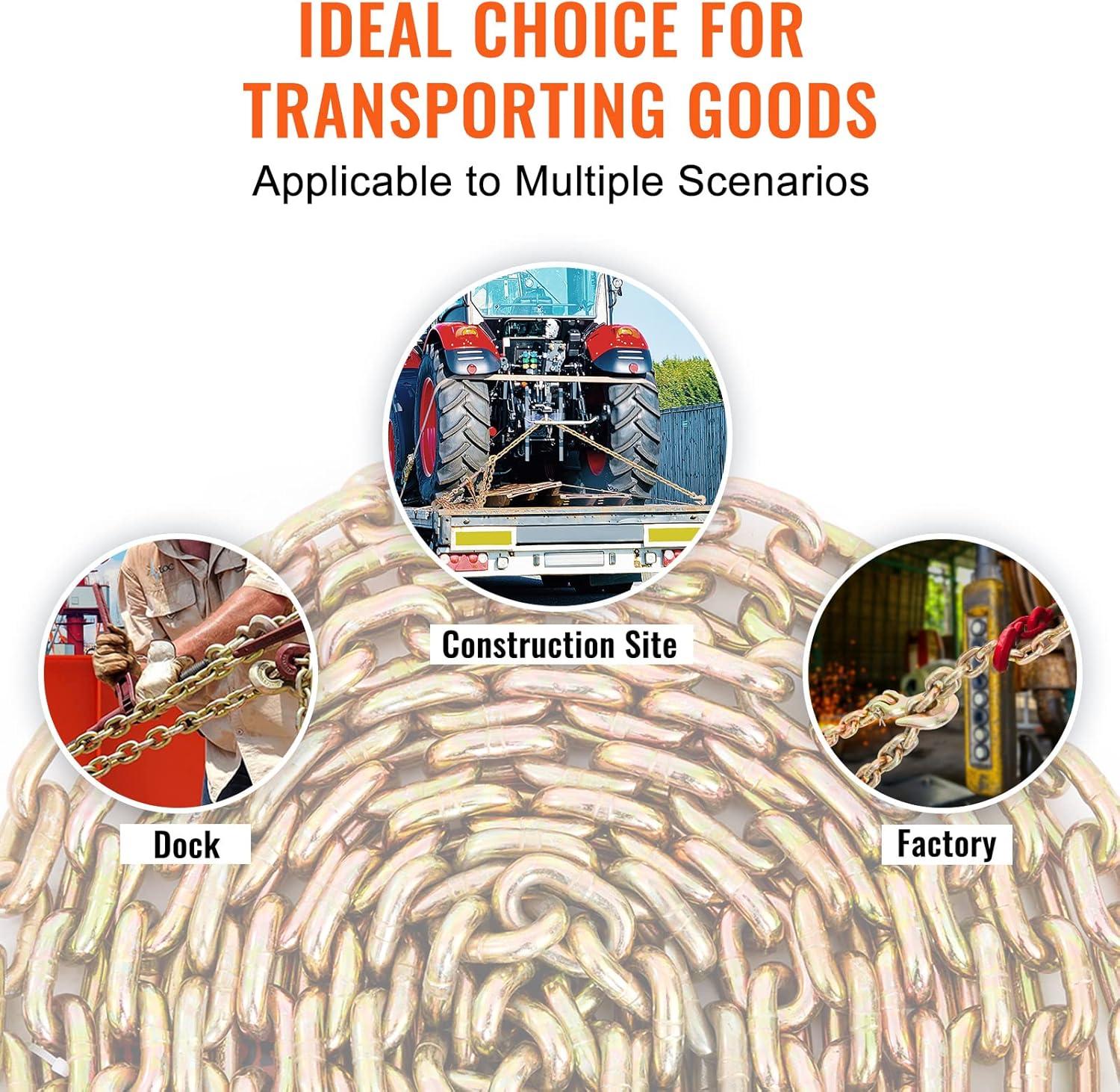 Wide Application: This heavy-duty log chain is perfect for securing cargo. It is a great fit for factories, construction sites, mining activities, ports, and more.