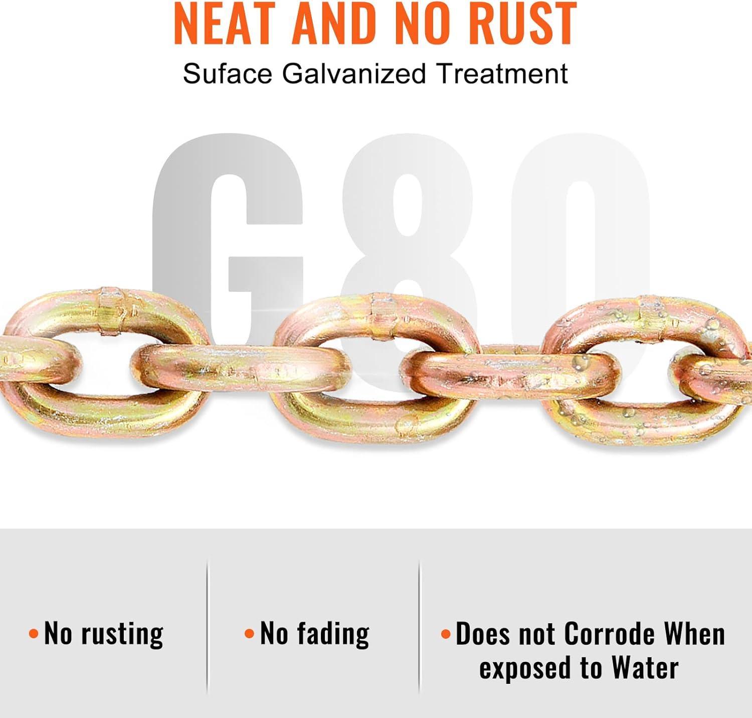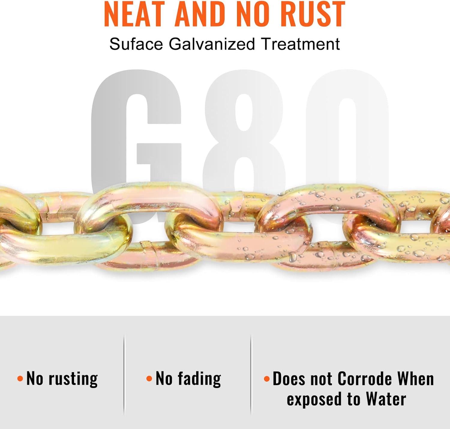 G80 Grade Strength: This G80 grade binder chain boasts impressive tensile strength! With a length of 14.2 ft (433 cm) and a diameter of 5/16 in (8 mm), it can handle a strong breaking strength.