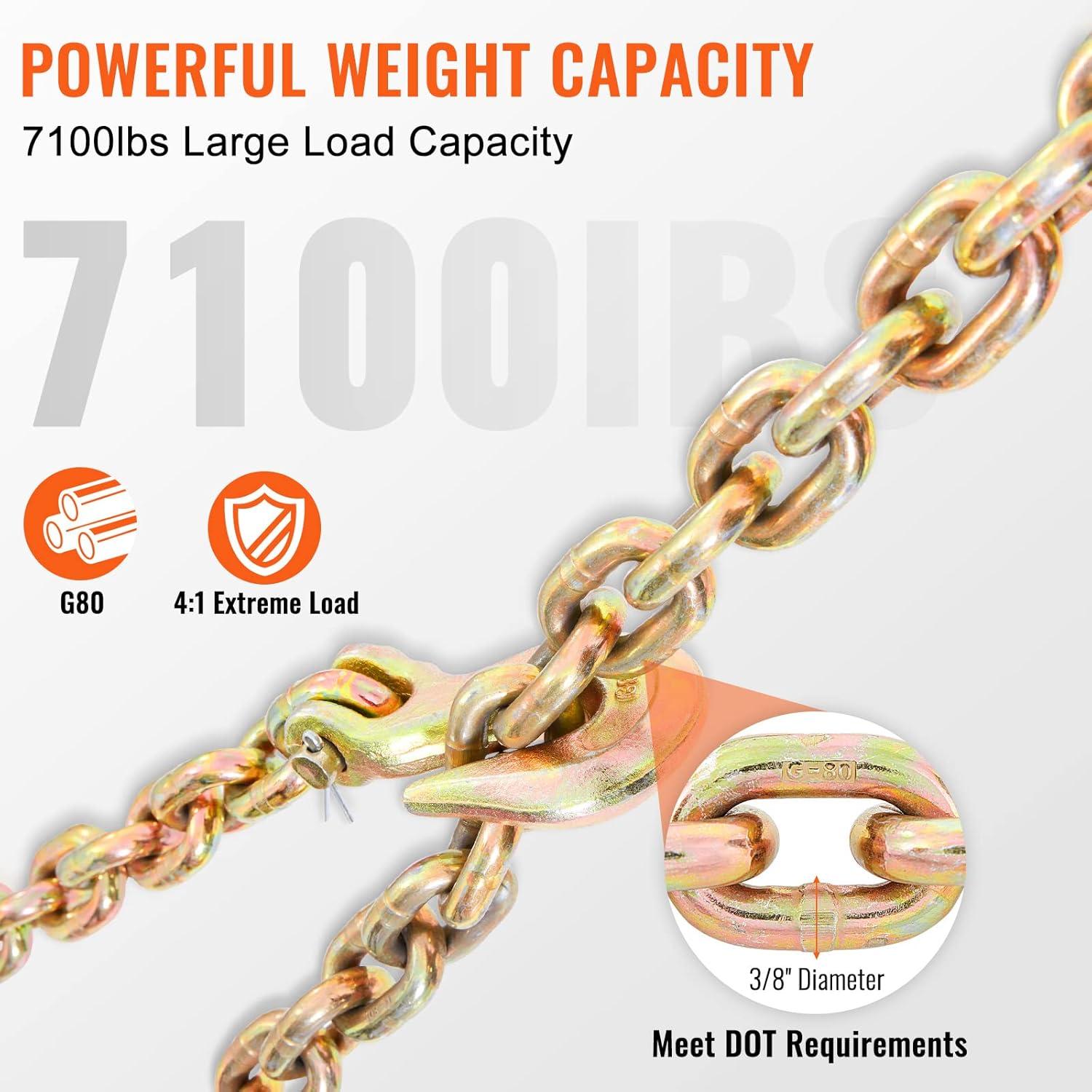 Safe and Reliable: Meeting DOT requirements, this towing chain has clearly marked parts and can take on heavy-duty wear and tear. If you stay within the safe load range, you're good to go. Got questions? We're here to help!