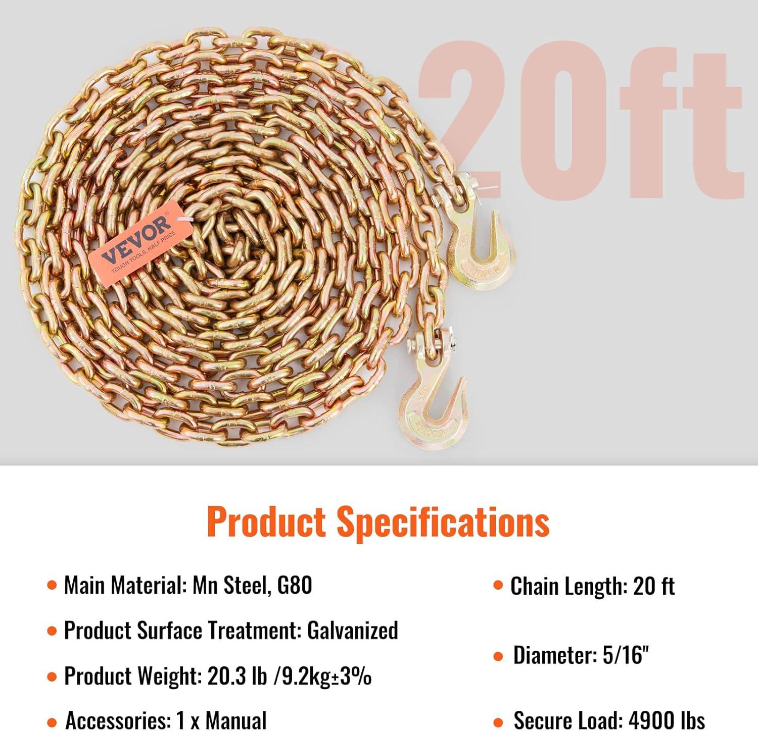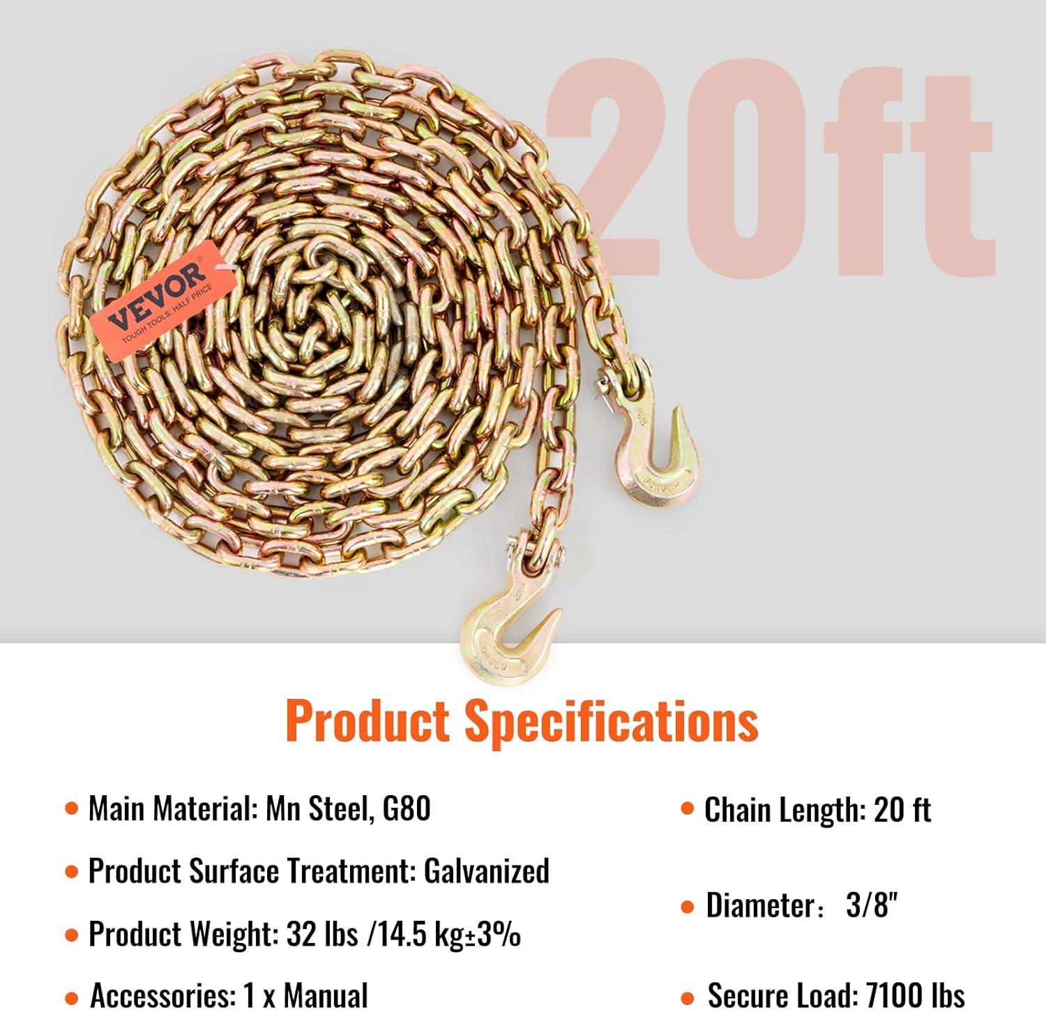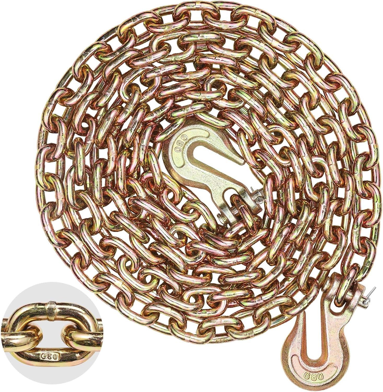Durable and Wear-Resistant: Made from high-quality steel and galvanized for extra protection, this tie down chain and hook combo resists corrosion and heavy-duty wear. Perfect for long-term use, even in tough conditions.