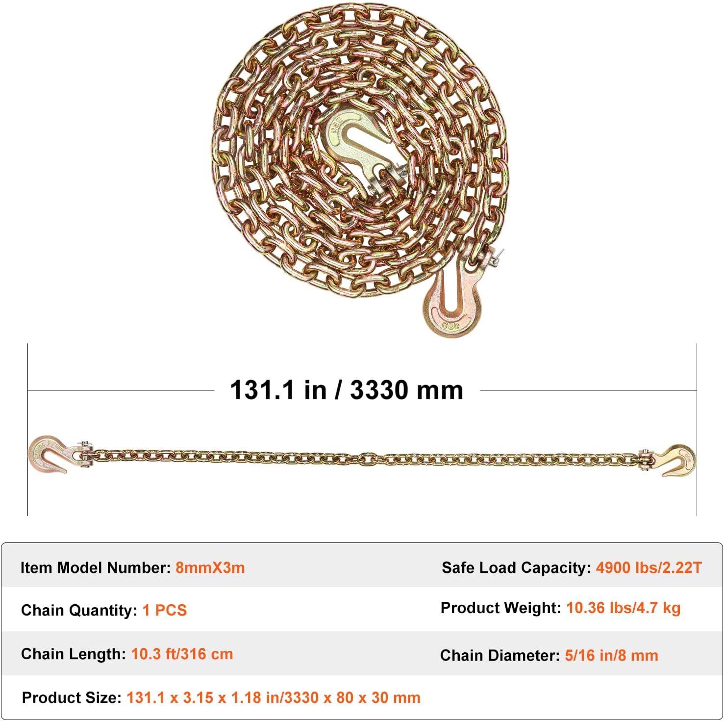4900 lbs/2.22T Strong Load Capacity: Our tow chain can handle a working load of 4900 lbs (2.22T). With a 4:1 security factor, it means you're covered for loads up to four times that amount. Feel secure and confident with every use.