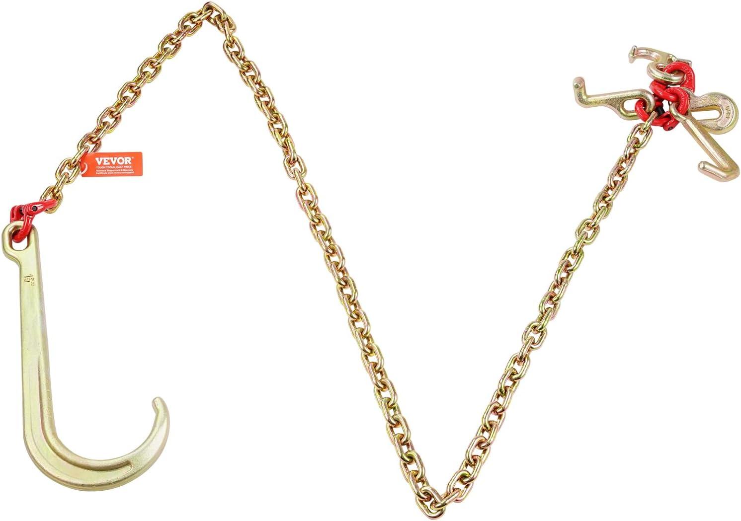 VEVOR G80 V Bridle Chain, 5/16″ x 3′ Towing Chain Bridle with R Hooks, T Hooks, J Hooks and Grab Hooks, Transport Tow Chain Bridle with 10800 lbs Safe Working Load for Flatbed Truck Wrecker Recovery(5/16Inch x 3FT)